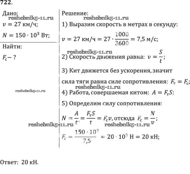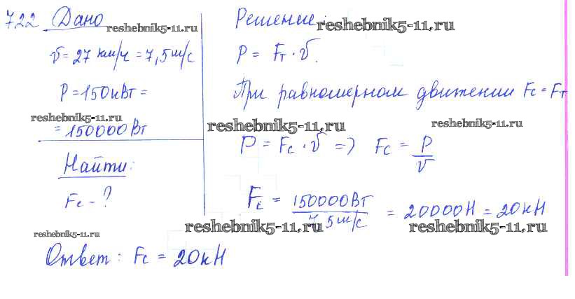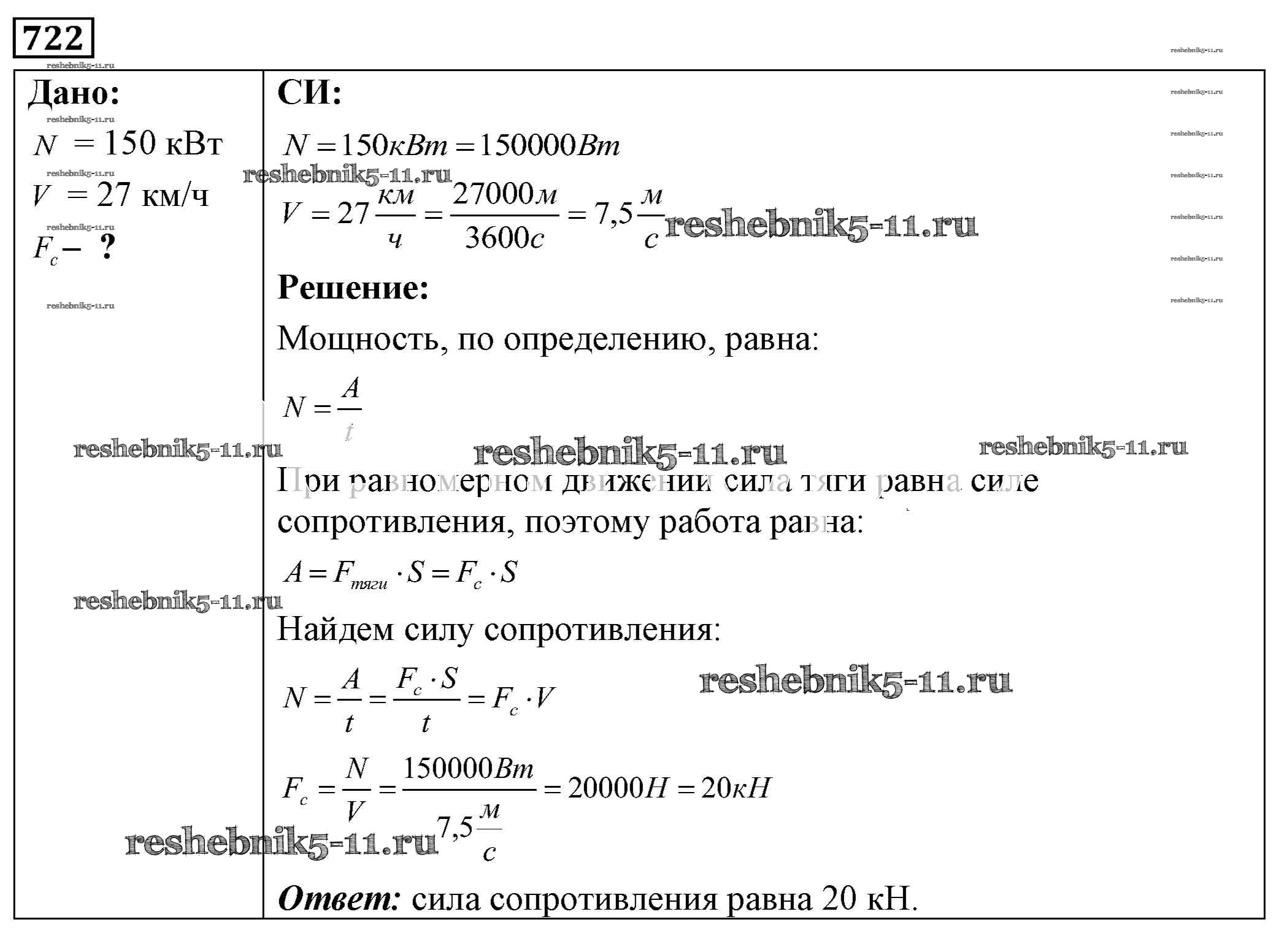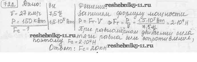 Готовая домашняя работа с ответами по Физике за 7, 8, 9 класс Лукашик, Иванова Сборник задач Просвещение 2011 ФГОС - Задания 722