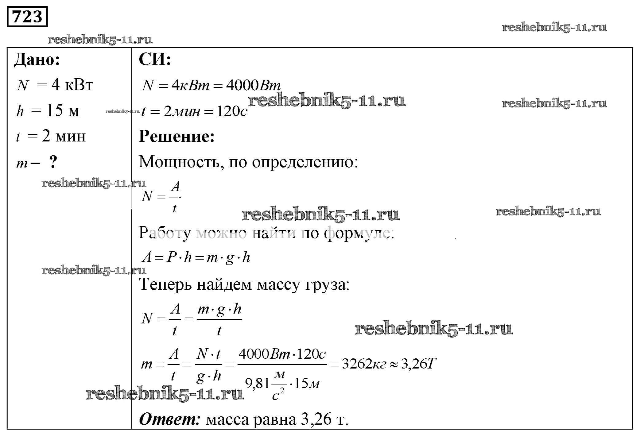 Готовая домашняя работа с ответами по Физике за 7, 8, 9 класс Лукашик, Иванова Сборник задач Просвещение 2011 ФГОС - Задания 723