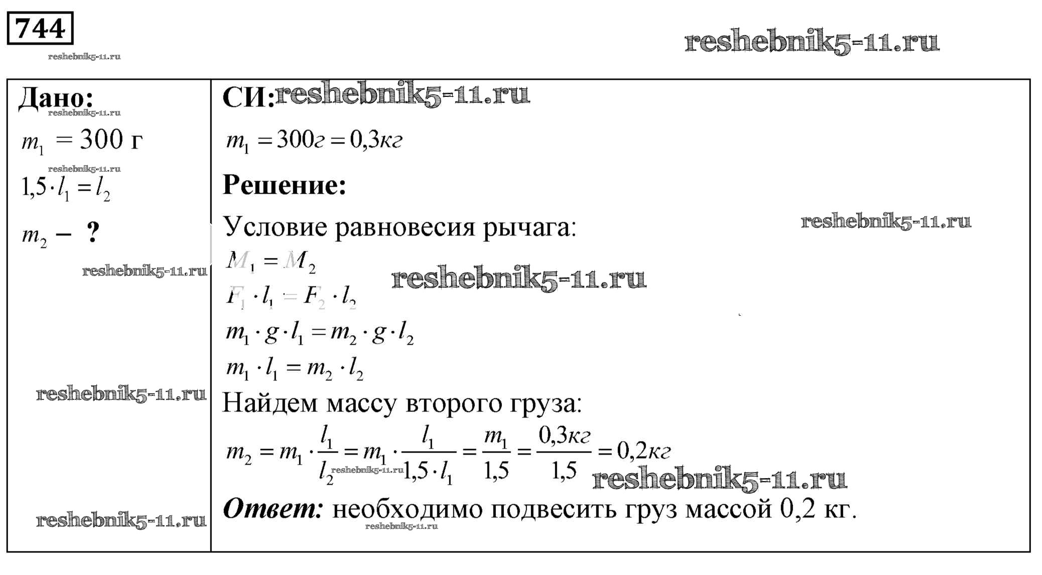 Готовая домашняя работа с ответами по Физике за 7, 8, 9 класс Лукашик, Иванова Сборник задач Просвещение 2011 ФГОС - Задания 744