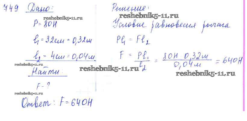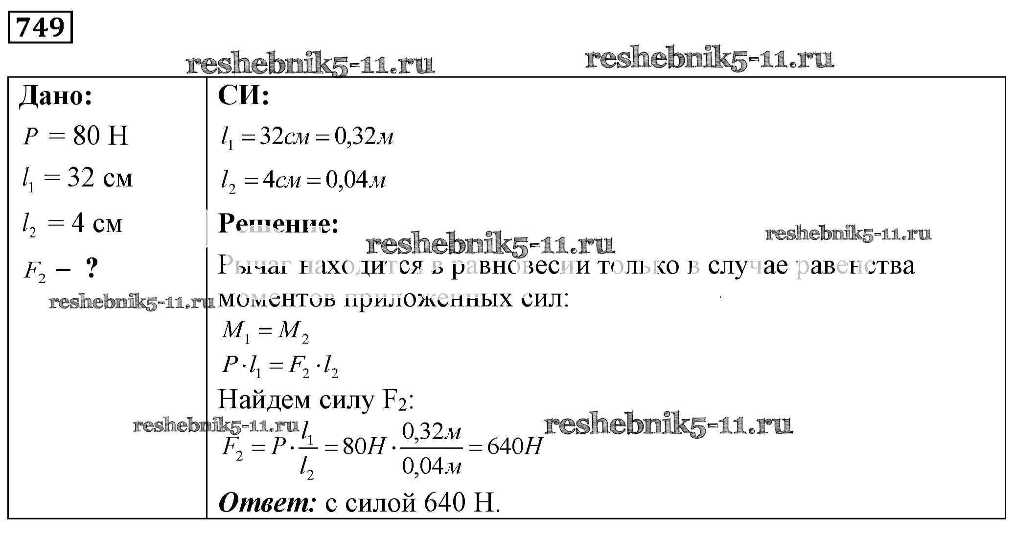 Готовая домашняя работа с ответами по Физике за 7, 8, 9 класс Лукашик, Иванова Сборник задач Просвещение 2011 ФГОС - Задания 749