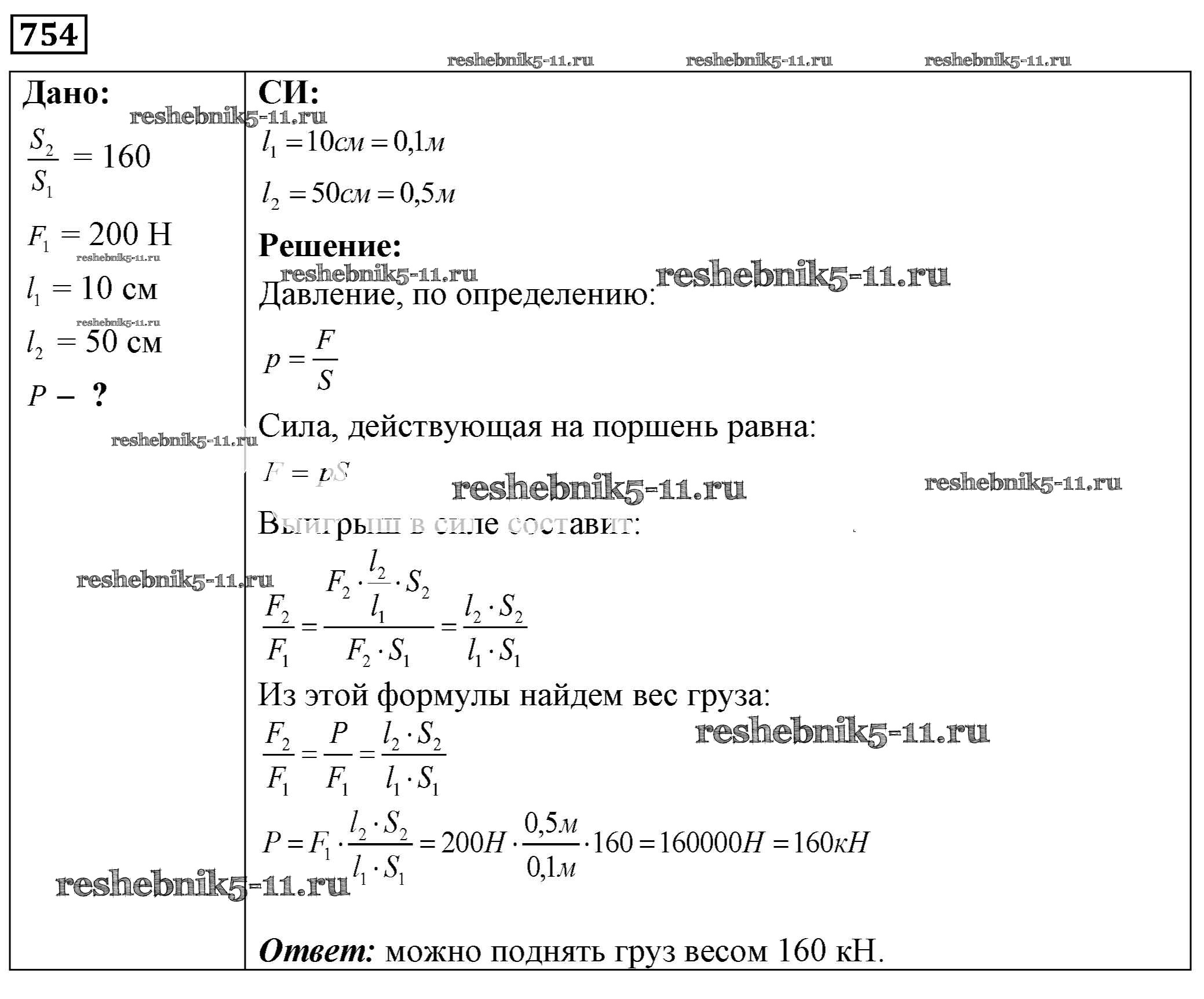 Готовая домашняя работа с ответами по Физике за 7, 8, 9 класс Лукашик, Иванова Сборник задач Просвещение 2011 ФГОС - Задания 754