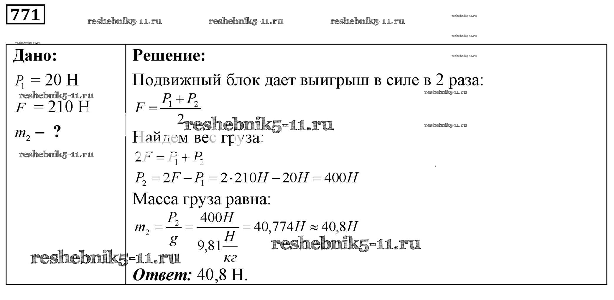 Готовая домашняя работа с ответами по Физике за 7, 8, 9 класс Лукашик, Иванова Сборник задач Просвещение 2011 ФГОС - Задания 771
