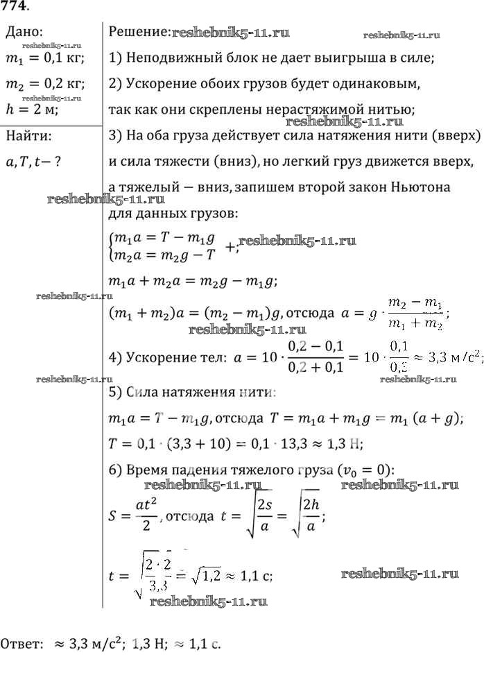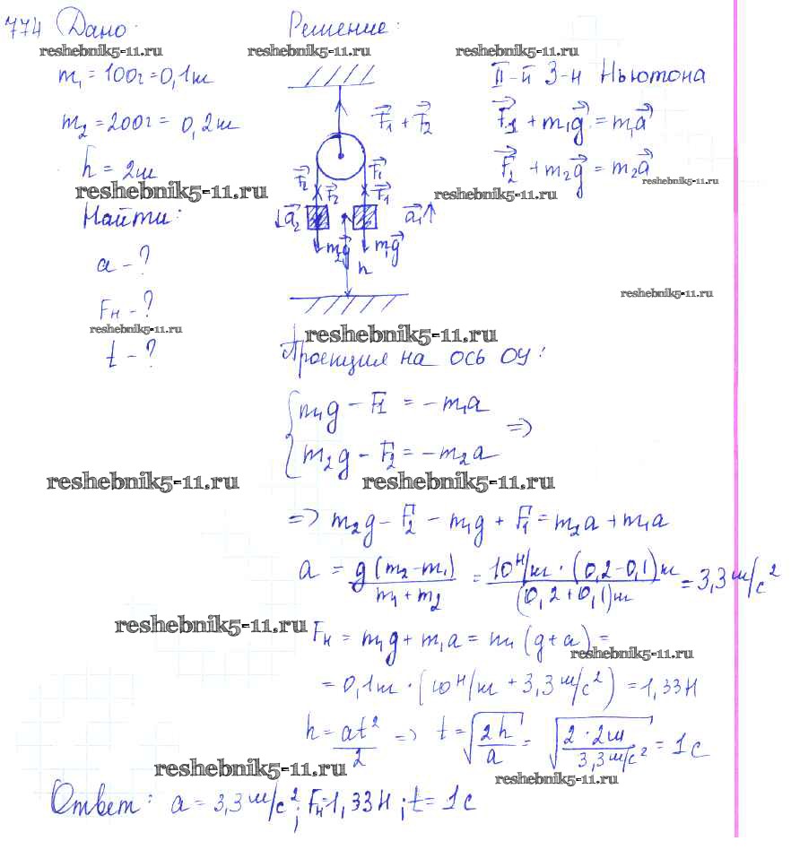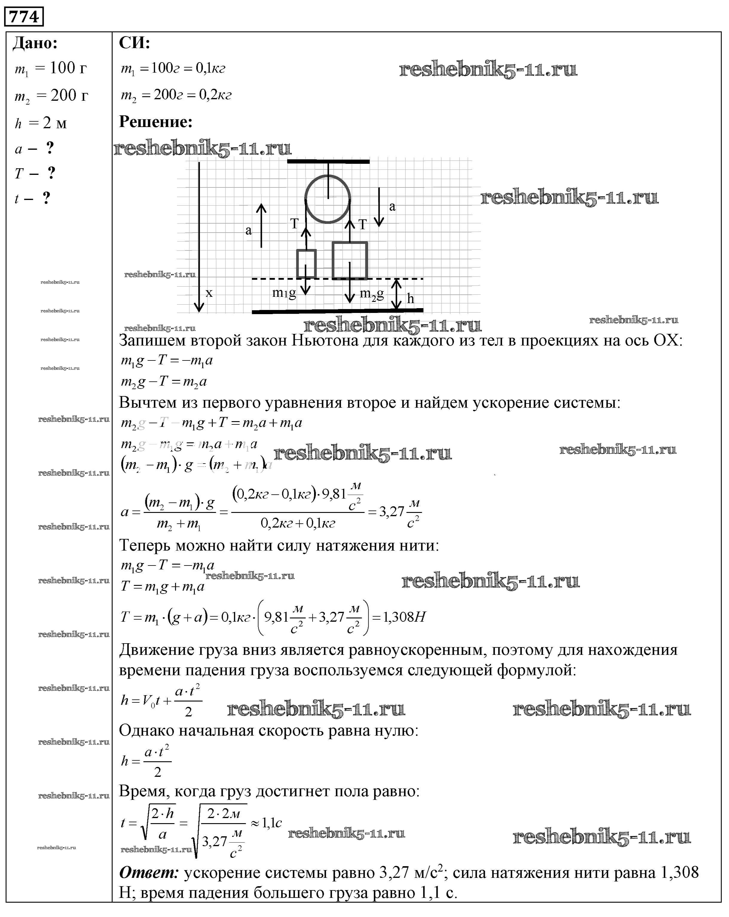 Готовая домашняя работа с ответами по Физике за 7, 8, 9 класс Лукашик, Иванова Сборник задач Просвещение 2011 ФГОС - Задания 774