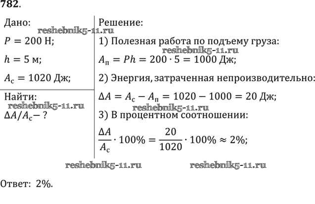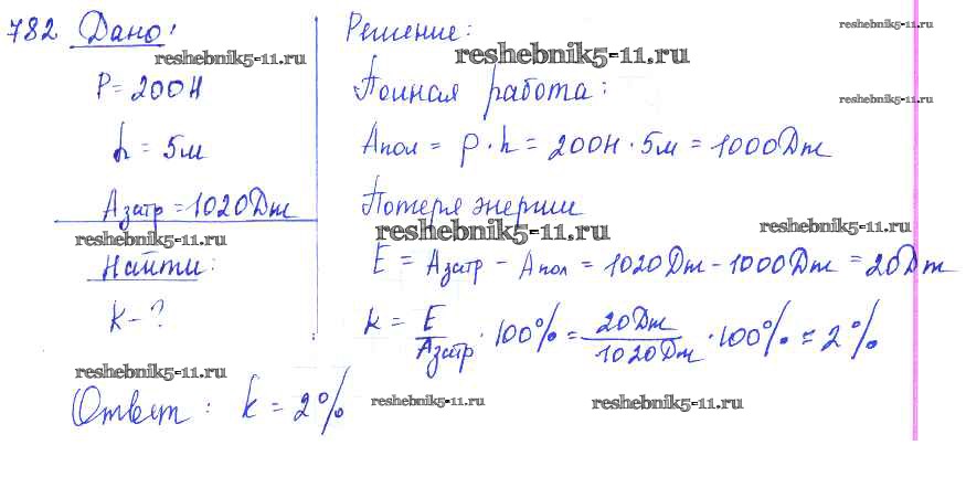 Готовая домашняя работа с ответами по Физике за 7, 8, 9 класс Лукашик, Иванова Сборник задач Просвещение 2011 ФГОС - Задания 782