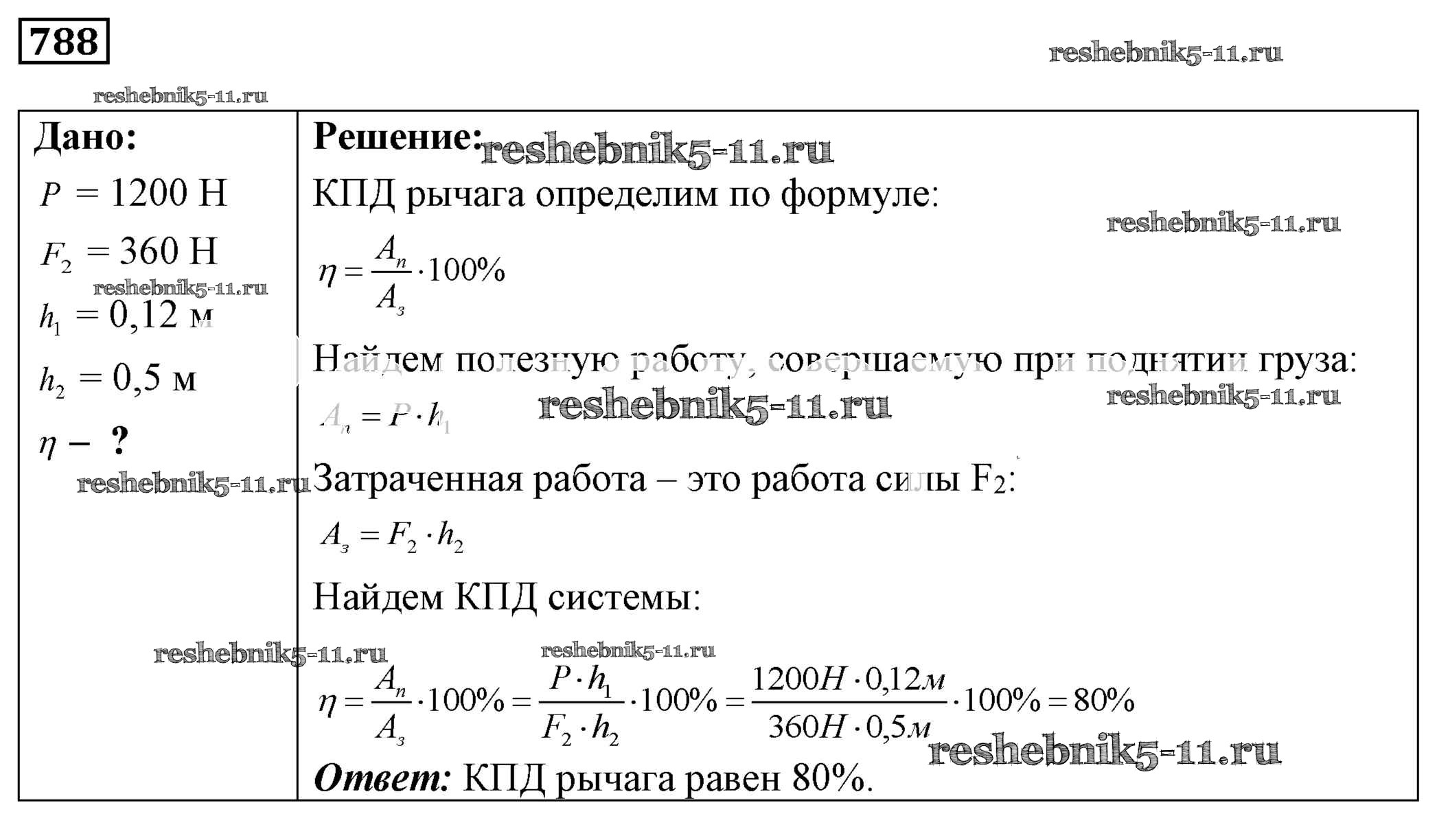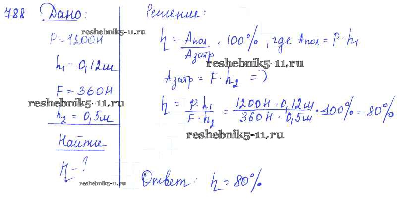 Готовая домашняя работа с ответами по Физике за 7, 8, 9 класс Лукашик, Иванова Сборник задач Просвещение 2011 ФГОС - Задания 788