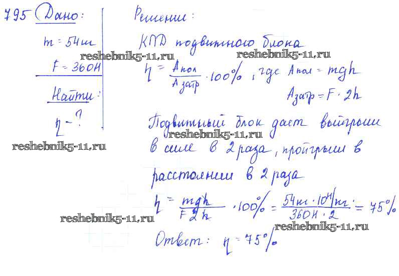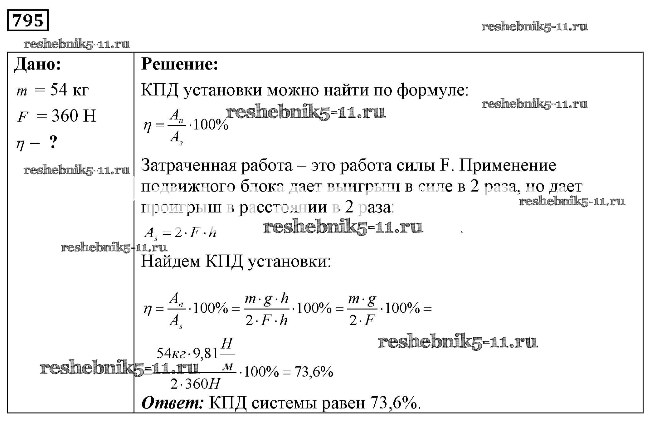Готовая домашняя работа с ответами по Физике за 7, 8, 9 класс Лукашик, Иванова Сборник задач Просвещение 2011 ФГОС - Задания 795