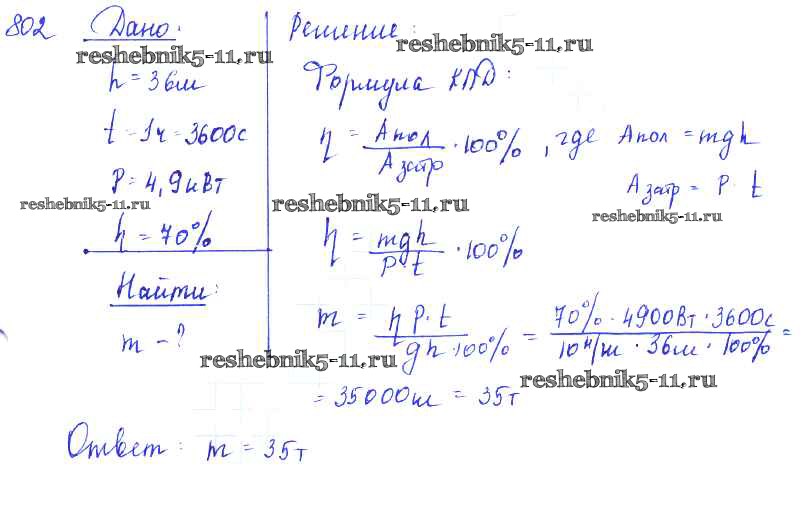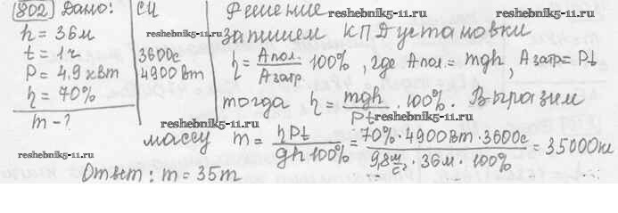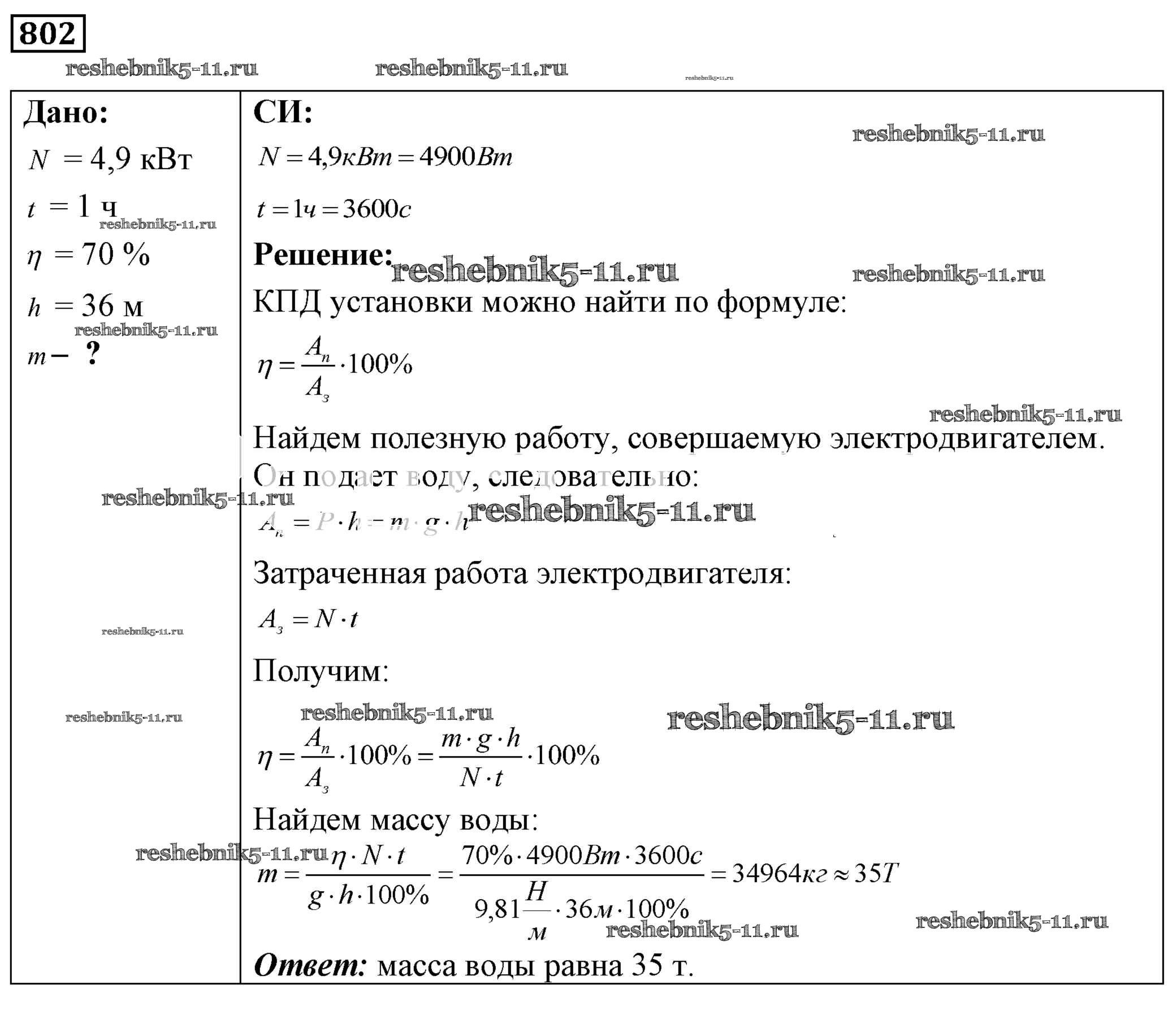 Готовая домашняя работа с ответами по Физике за 7, 8, 9 класс Лукашик, Иванова Сборник задач Просвещение 2011 ФГОС - Задания 802