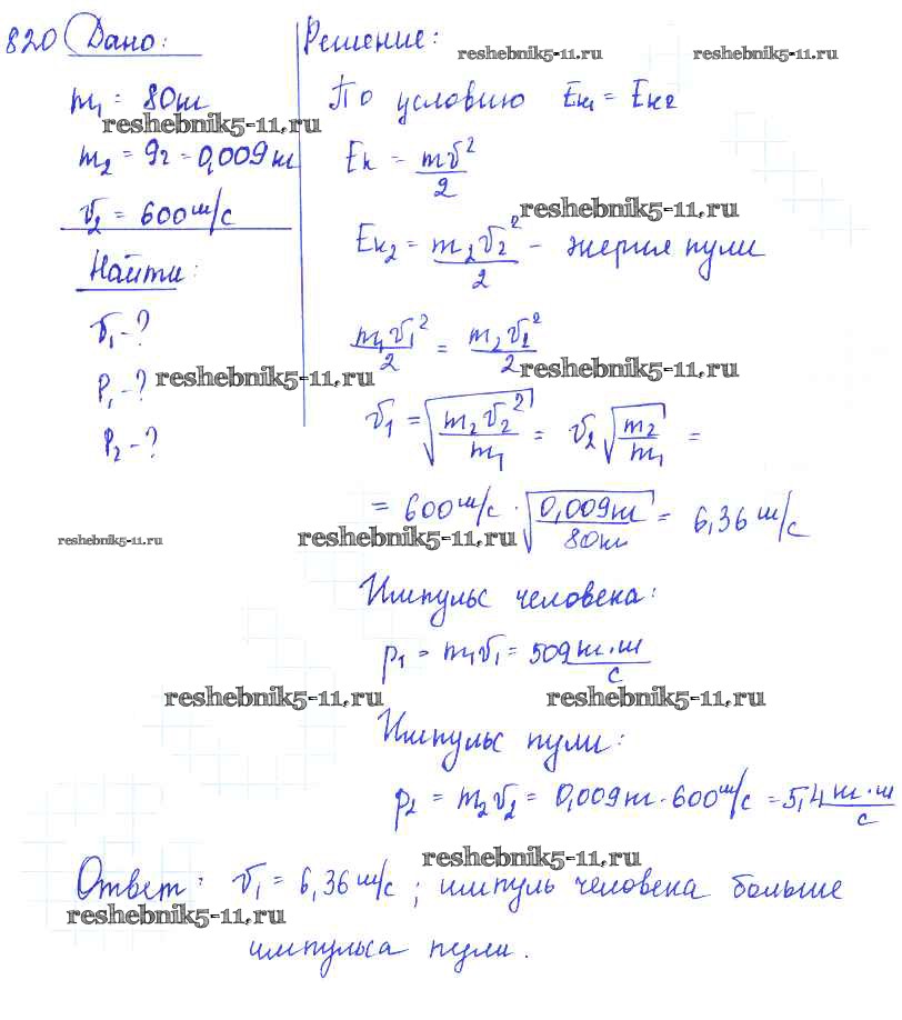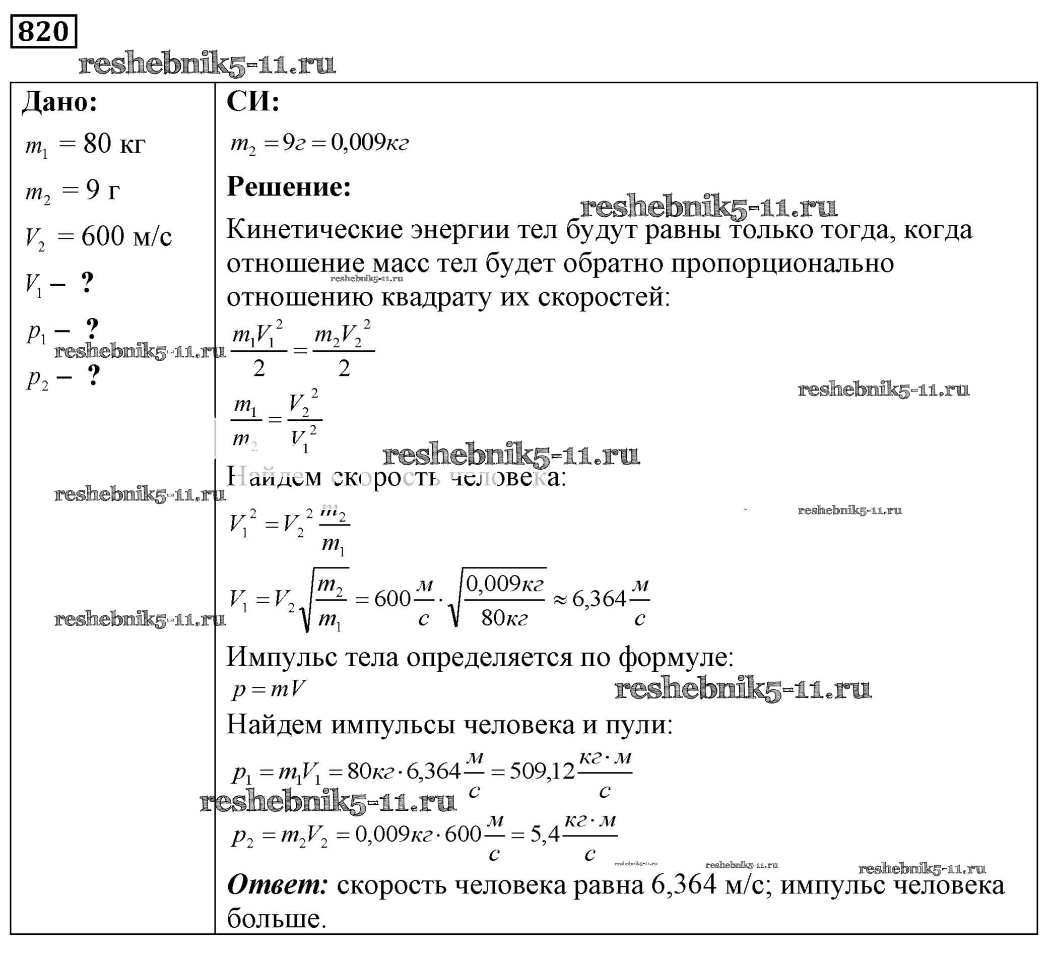 Готовая домашняя работа с ответами по Физике за 7, 8, 9 класс Лукашик, Иванова Сборник задач Просвещение 2011 ФГОС - Задания 820