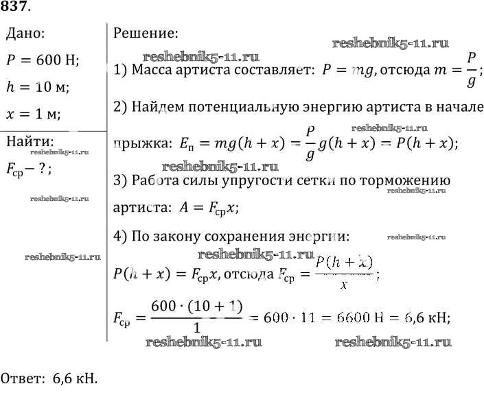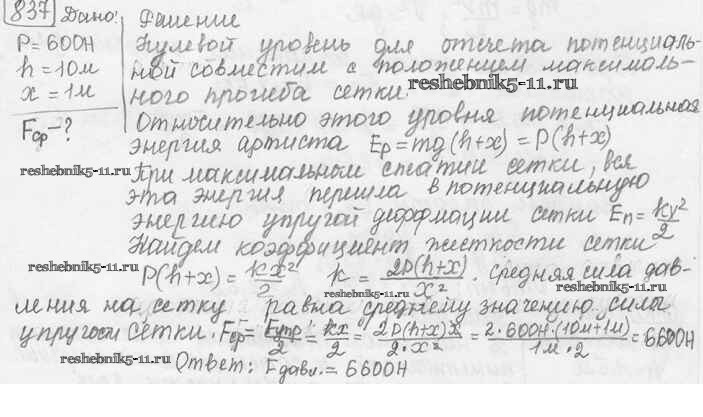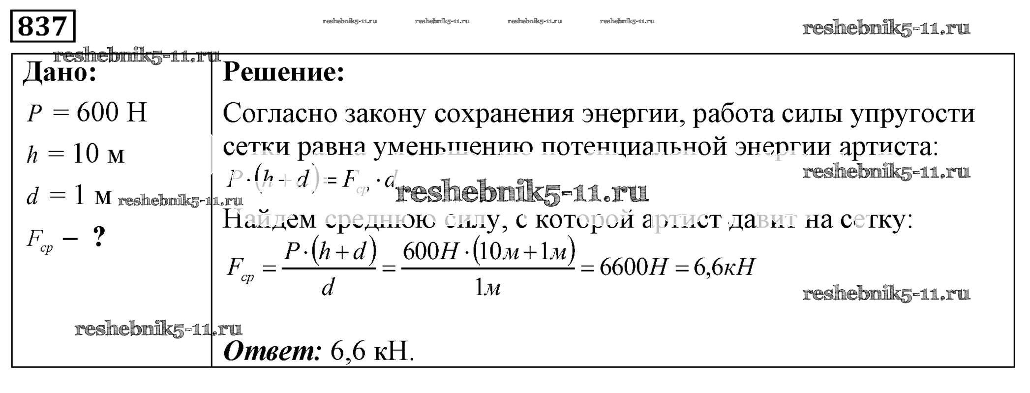 Готовая домашняя работа с ответами по Физике за 7, 8, 9 класс Лукашик, Иванова Сборник задач Просвещение 2011 ФГОС - Задания 837