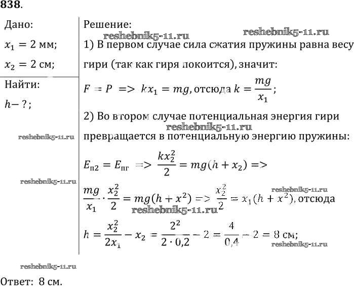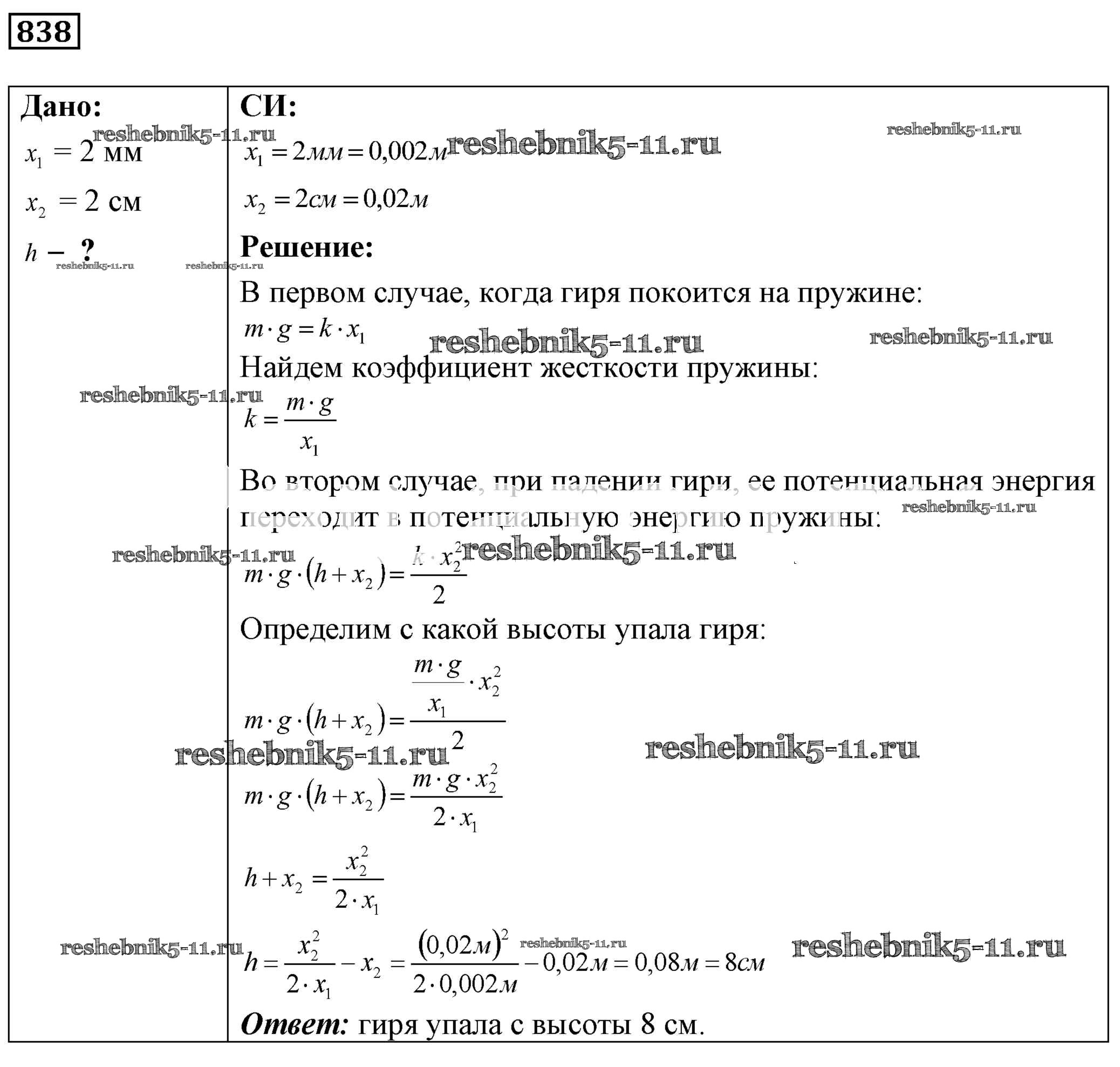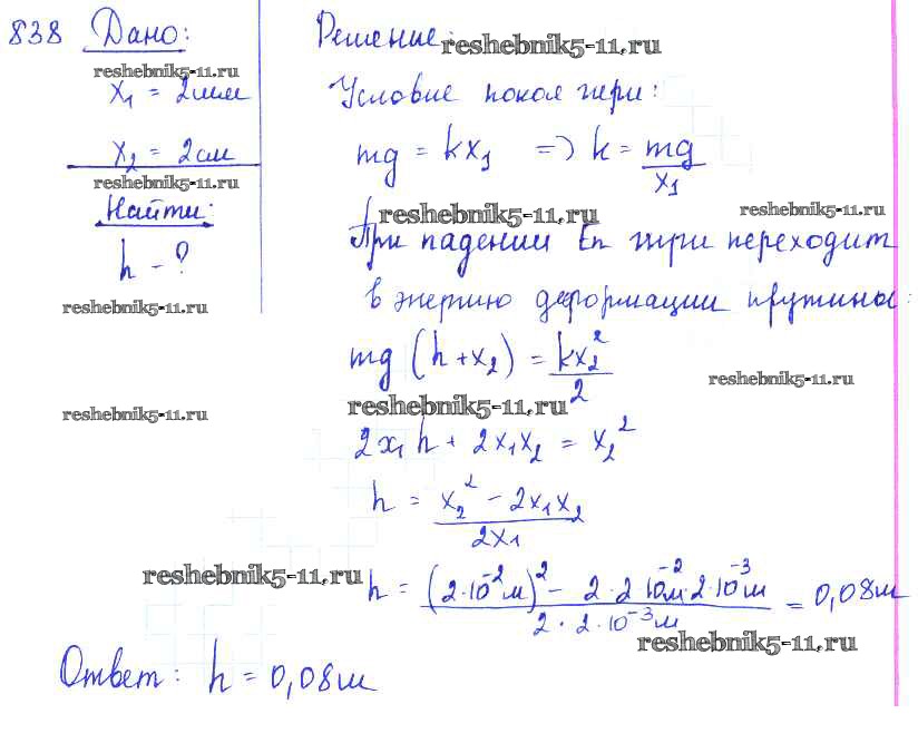 Готовая домашняя работа с ответами по Физике за 7, 8, 9 класс Лукашик, Иванова Сборник задач Просвещение 2011 ФГОС - Задания 838