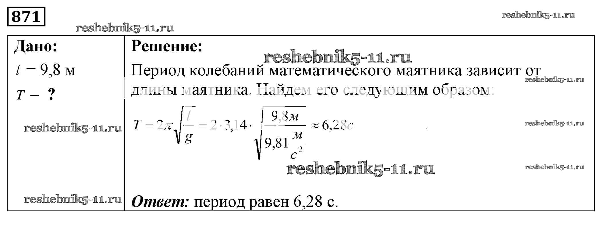 Готовая домашняя работа с ответами по Физике за 7, 8, 9 класс Лукашик, Иванова Сборник задач Просвещение 2011 ФГОС - Задания 871