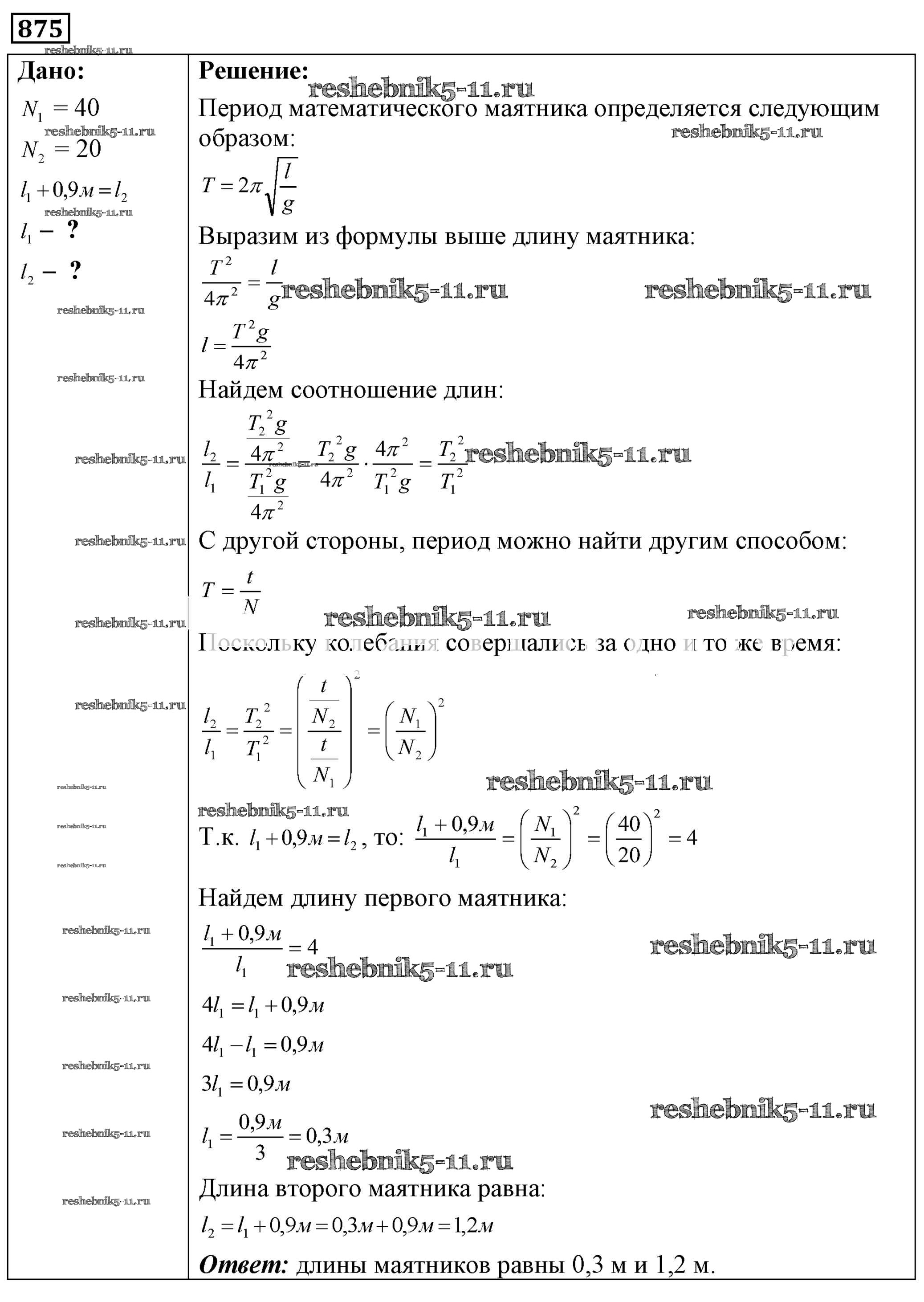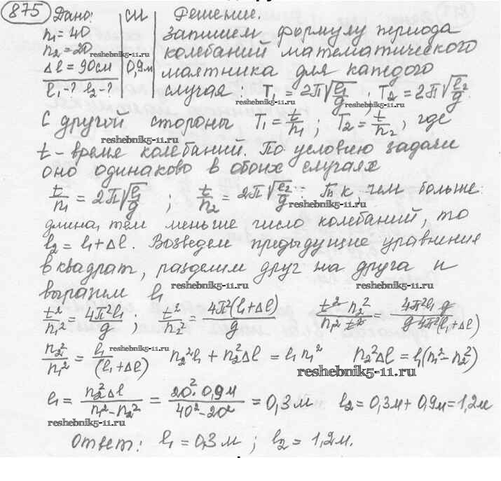 Готовая домашняя работа с ответами по Физике за 7, 8, 9 класс Лукашик, Иванова Сборник задач Просвещение 2011 ФГОС - Задания 875