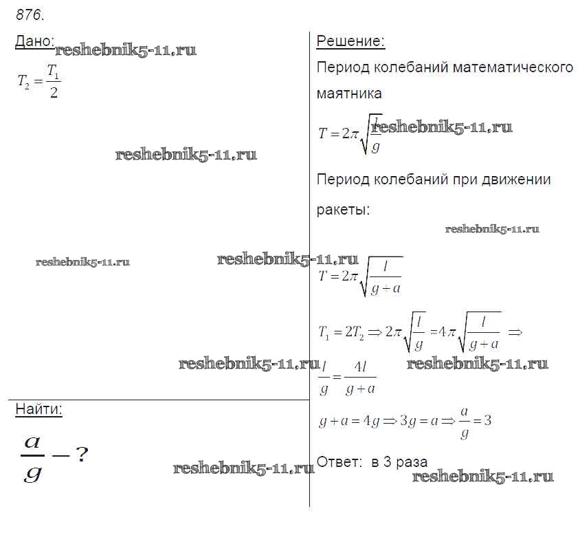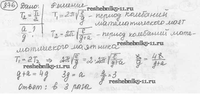 Готовая домашняя работа с ответами по Физике за 7, 8, 9 класс Лукашик, Иванова Сборник задач Просвещение 2011 ФГОС - Задания 876