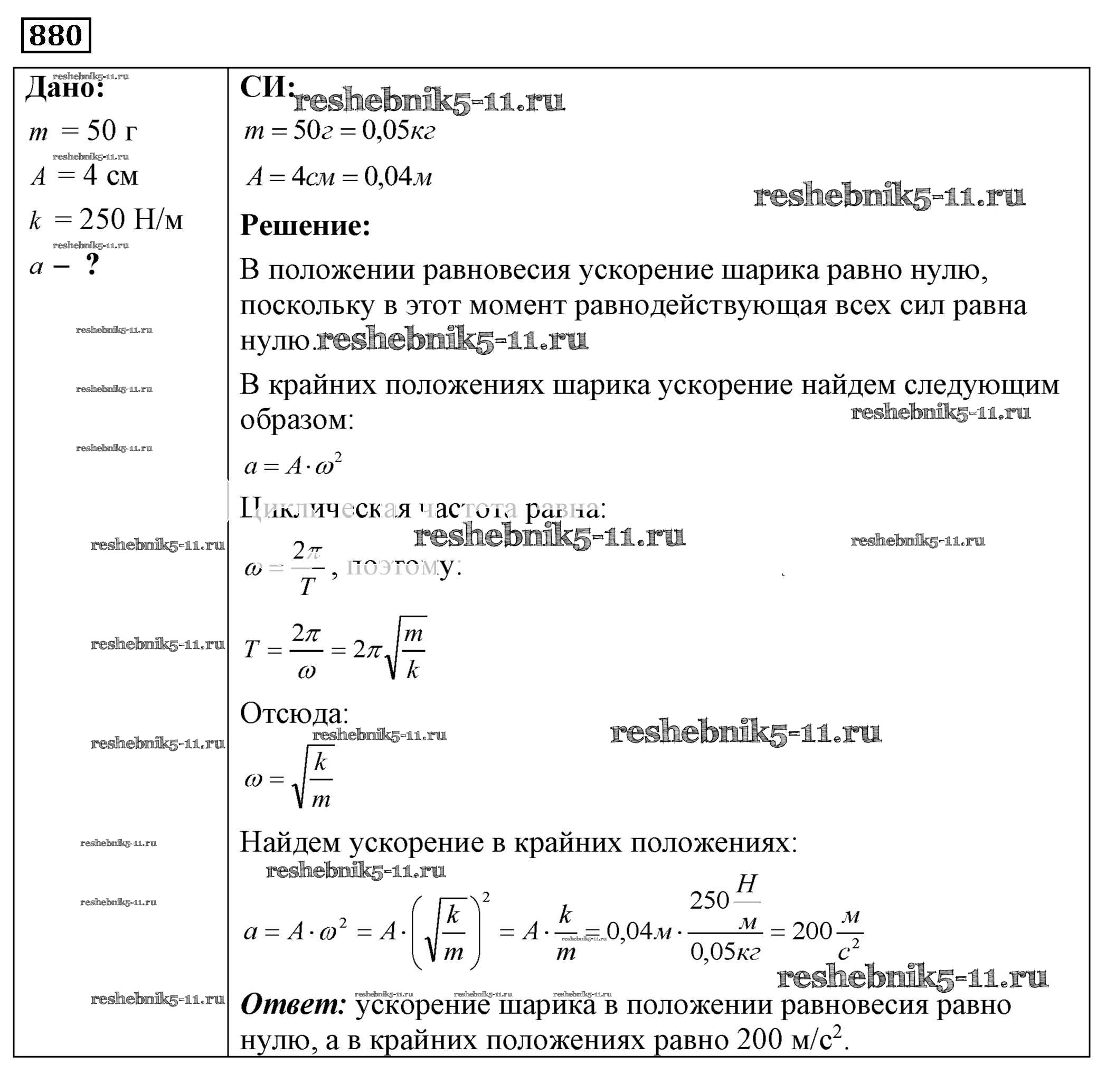 Готовая домашняя работа с ответами по Физике за 7, 8, 9 класс Лукашик, Иванова Сборник задач Просвещение 2011 ФГОС - Задания 880