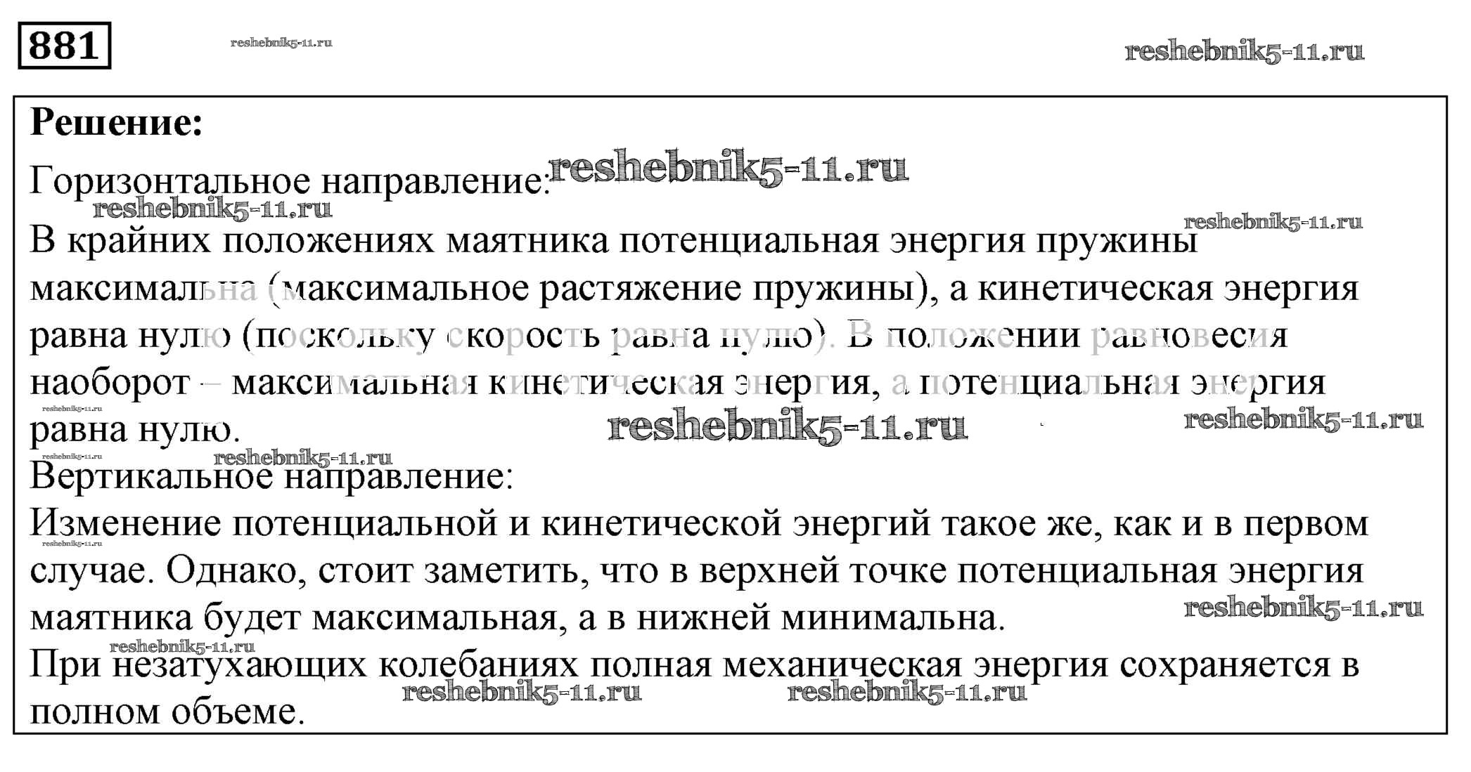 Готовая домашняя работа с ответами по Физике за 7, 8, 9 класс Лукашик, Иванова Сборник задач Просвещение 2011 ФГОС - Задания 881
