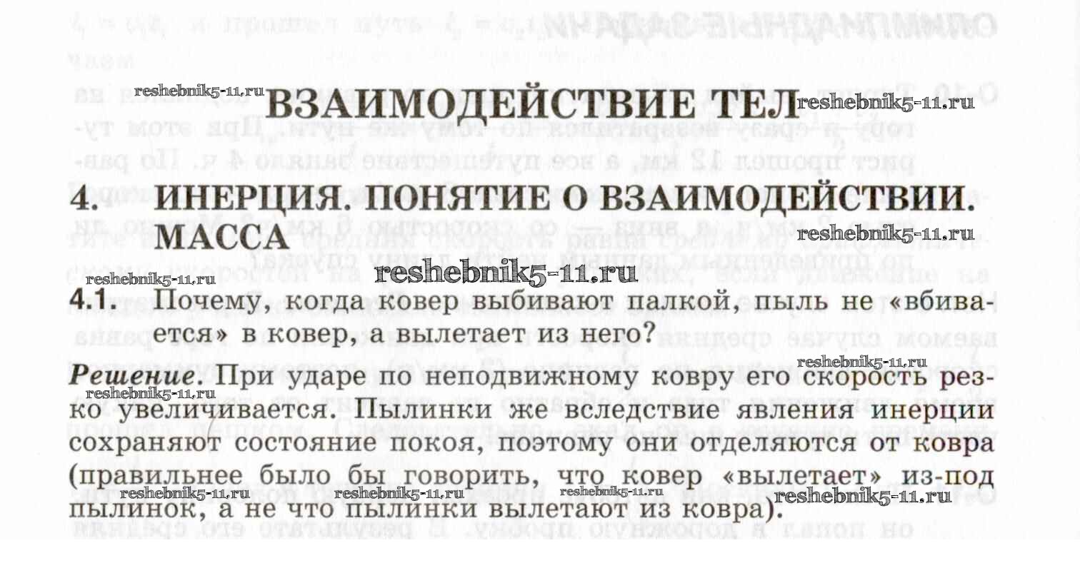 Готовая домашняя работа с ответами по Физике за 7, 8, 9 класс Генденштейн, Кирик, Гельфгат Задачник Илекса 2020 - 4. Инерция. Понятие о взаимодействии. Масса 4.1