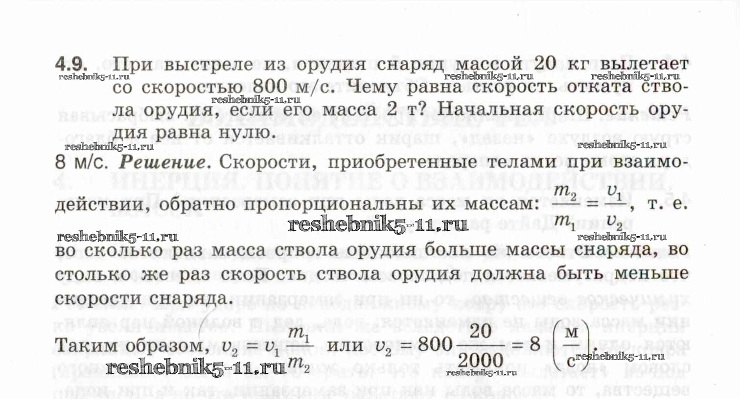 Готовая домашняя работа с ответами по Физике за 7, 8, 9 класс Генденштейн, Кирик, Гельфгат Задачник Илекса 2020 - 4. Инерция. Понятие о взаимодействии. Масса 4.9