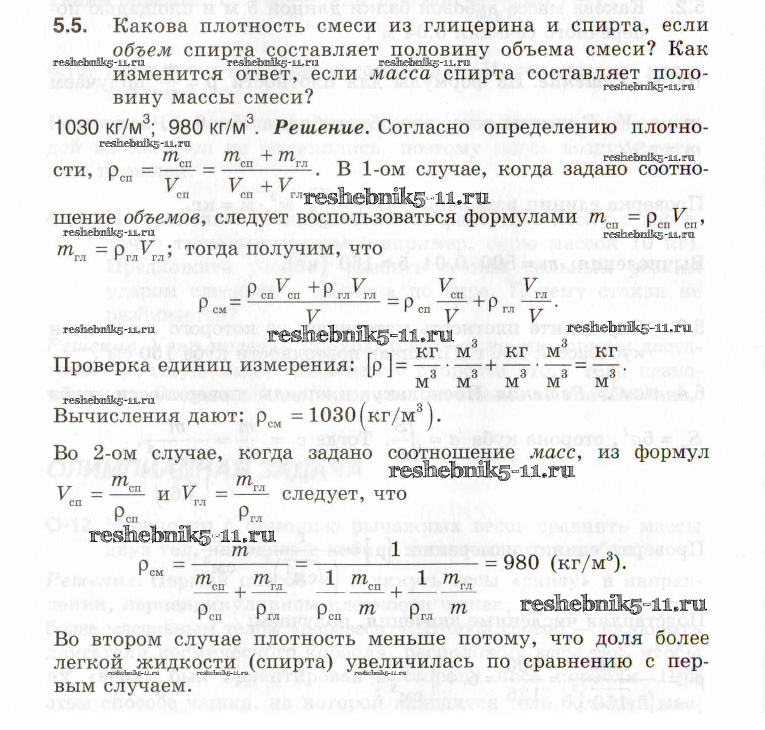 Готовая домашняя работа с ответами по Физике за 7, 8, 9 класс Генденштейн, Кирик, Гельфгат Задачник Илекса 2020 - 5. Плотность 5.5