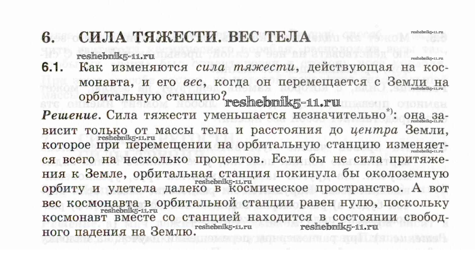 Готовая домашняя работа с ответами по Физике за 7, 8, 9 класс Генденштейн, Кирик, Гельфгат Задачник Илекса 2020 - 6. Сила тяжести. Вес тела 6.1