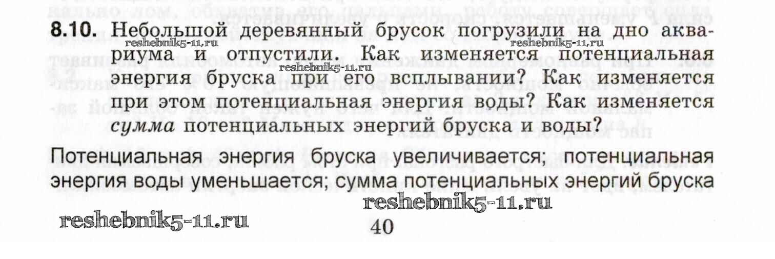 Готовая домашняя работа с ответами по Физике за 7, 8, 9 класс Генденштейн, Кирик, Гельфгат Задачник Илекса 2020 - 8. Механическая работа. Мощность. Энергия 8.10