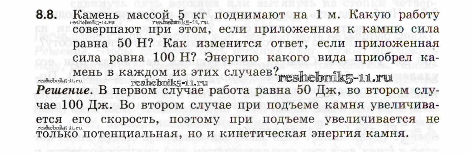 Готовая домашняя работа с ответами по Физике за 7, 8, 9 класс Генденштейн, Кирик, Гельфгат Задачник Илекса 2020 - 8. Механическая работа. Мощность. Энергия 8.8