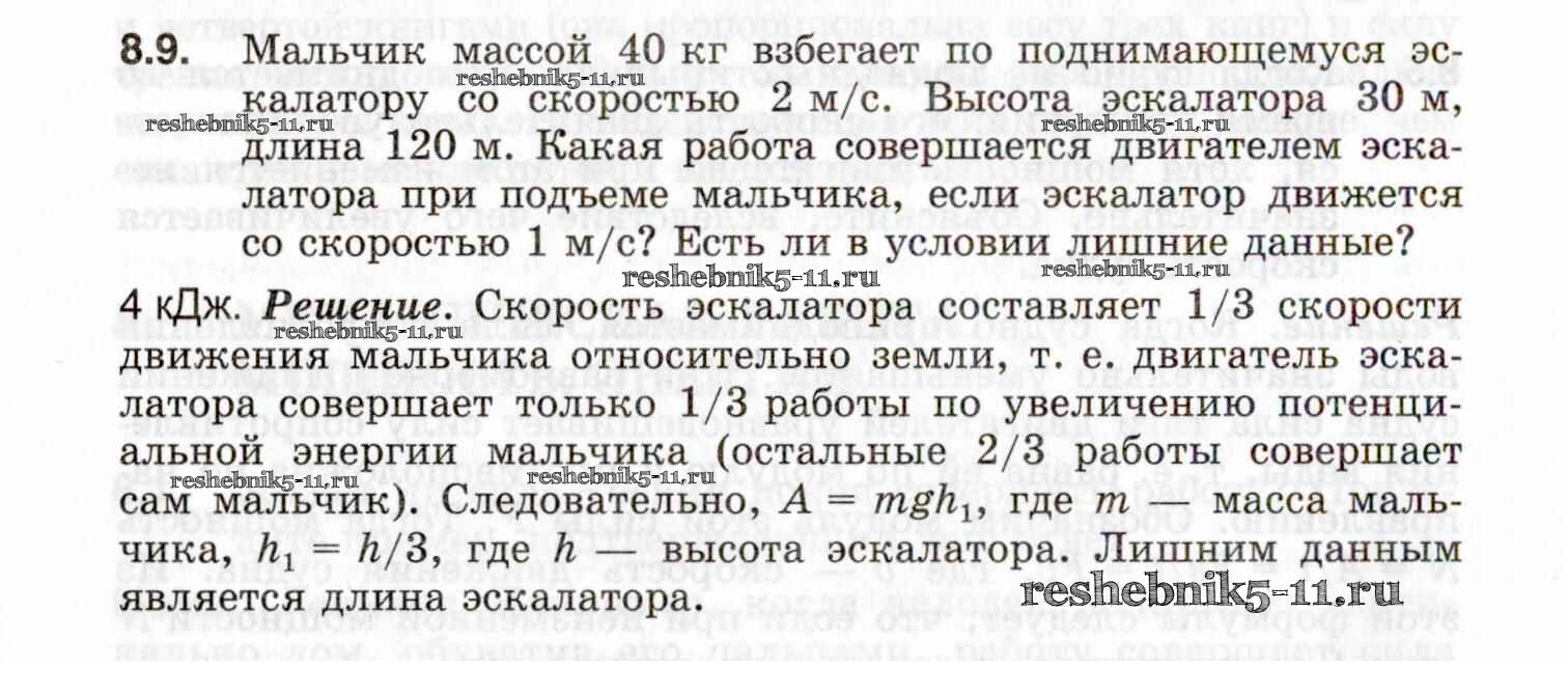 Готовая домашняя работа с ответами по Физике за 7, 8, 9 класс Генденштейн, Кирик, Гельфгат Задачник Илекса 2020 - 8. Механическая работа. Мощность. Энергия 8.9