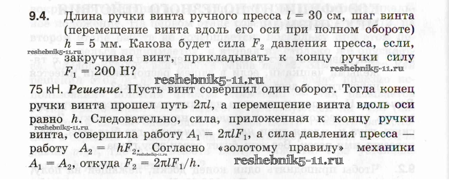 Готовая домашняя работа с ответами по Физике за 7, 8, 9 класс Генденштейн, Кирик, Гельфгат Задачник Илекса 2020 - 9. Рычаги. Блоки. «Золотое правило» механики. Коэффициент полезного действия механизмов 9.4