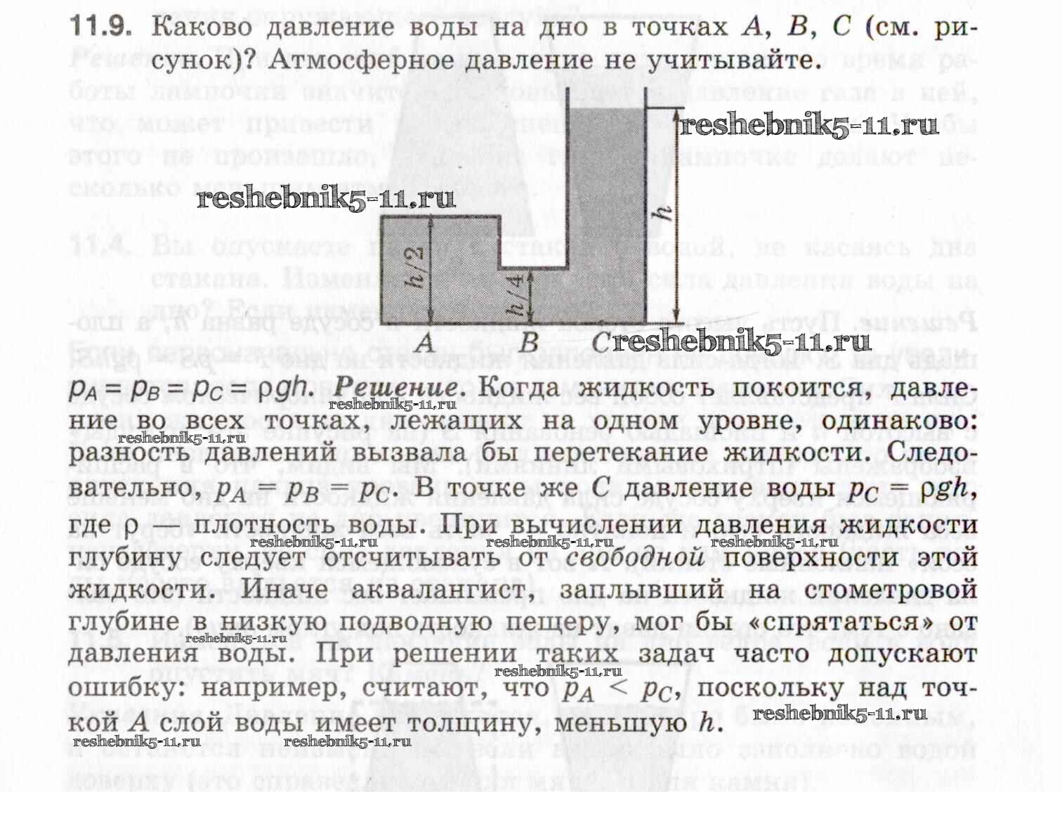 Готовая домашняя работа с ответами по Физике за 7, 8, 9 класс Генденштейн, Кирик, Гельфгат Задачник Илекса 2020 - 11. Давление жидкостей и газов 11.9