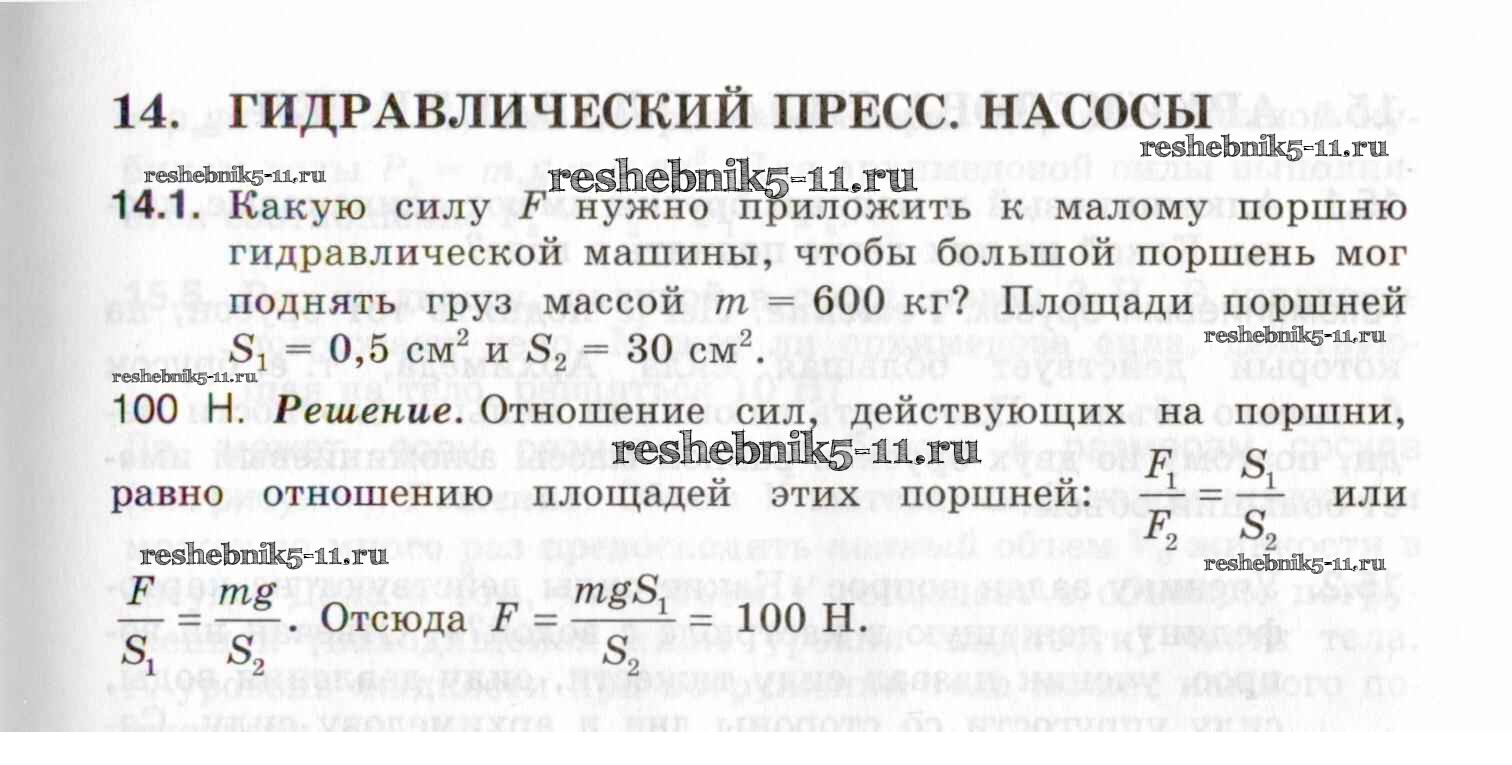 Готовая домашняя работа с ответами по Физике за 7, 8, 9 класс Генденштейн, Кирик, Гельфгат Задачник Илекса 2020 - 14. Гидравлический пресс. Насосы 14.1