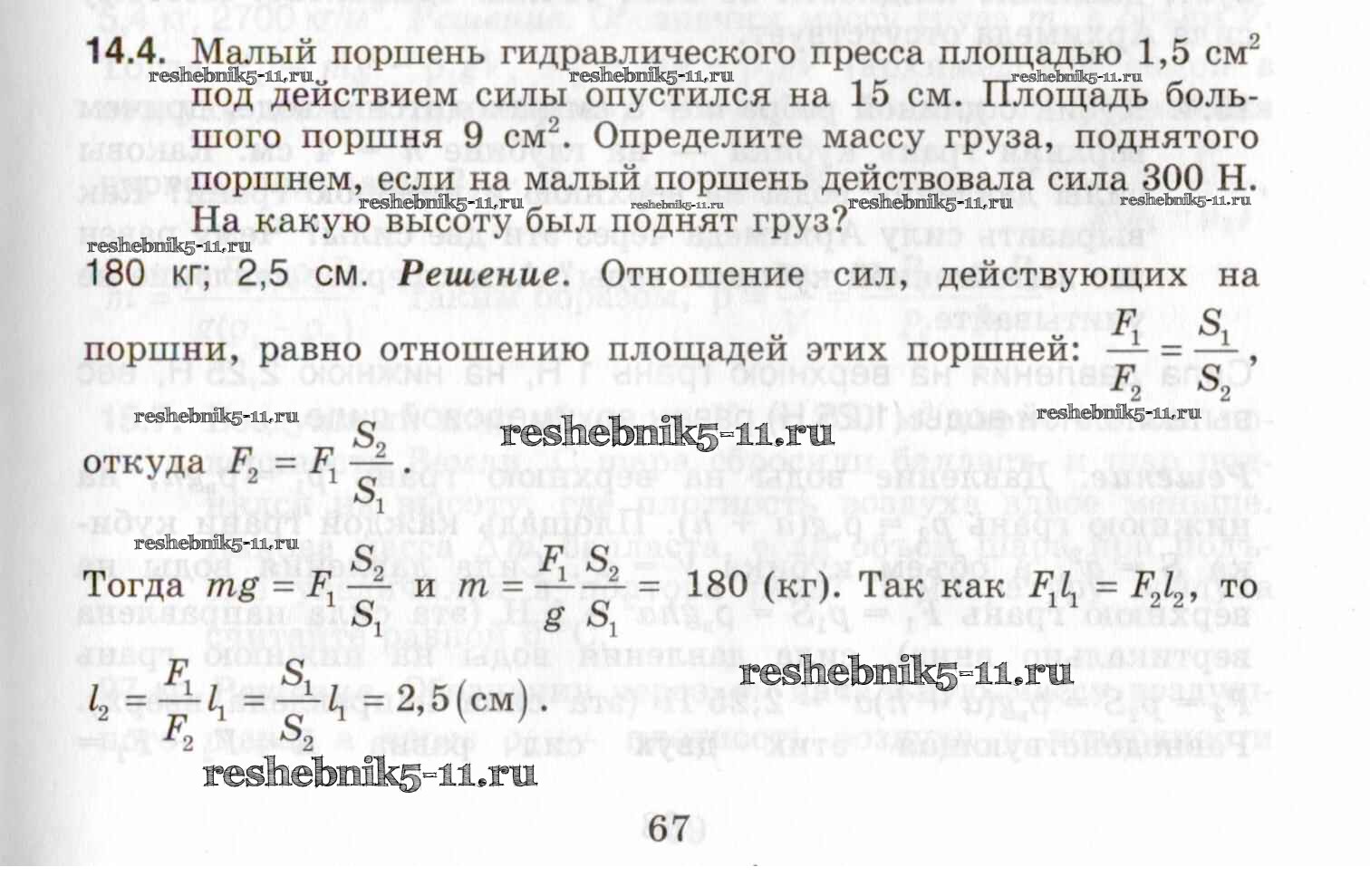 Готовая домашняя работа с ответами по Физике за 7, 8, 9 класс Генденштейн, Кирик, Гельфгат Задачник Илекса 2020 - 14. Гидравлический пресс. Насосы 14.4