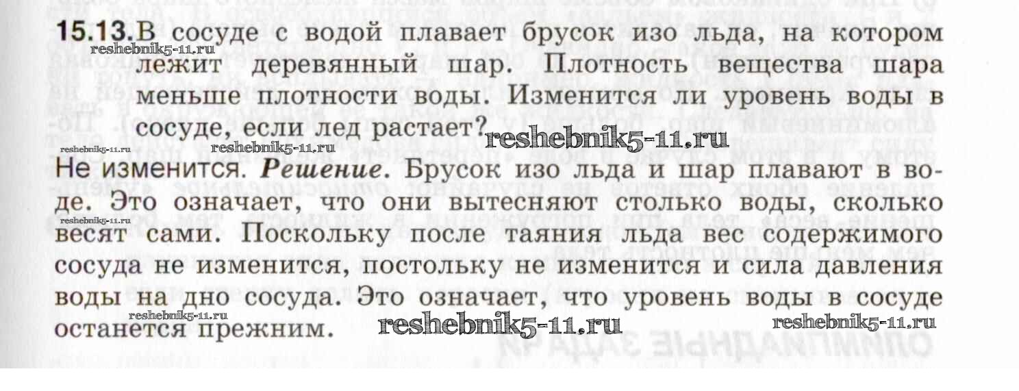 Готовая домашняя работа с ответами по Физике за 7, 8, 9 класс Генденштейн, Кирик, Гельфгат Задачник Илекса 2020 - 15. Архимедова сила. Плавание тел 15.13