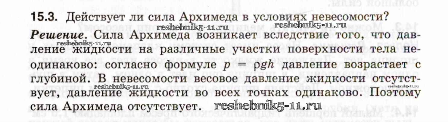 Готовая домашняя работа с ответами по Физике за 7, 8, 9 класс Генденштейн, Кирик, Гельфгат Задачник Илекса 2020 - 15. Архимедова сила. Плавание тел 15.3