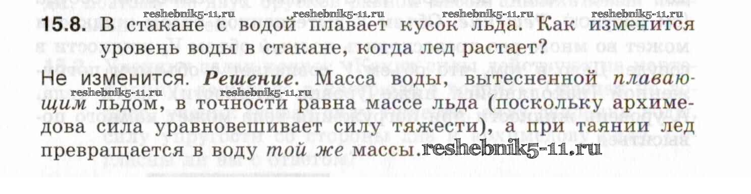 Готовая домашняя работа с ответами по Физике за 7, 8, 9 класс Генденштейн, Кирик, Гельфгат Задачник Илекса 2020 - 15. Архимедова сила. Плавание тел 15.8