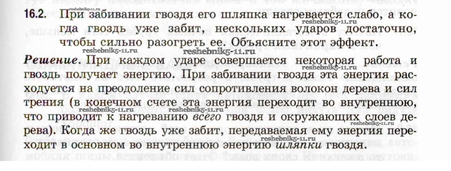 Готовая домашняя работа с ответами по Физике за 7, 8, 9 класс Генденштейн, Кирик, Гельфгат Задачник Илекса 2020 - 16. Внутренняя энергия. Теплопередача и работа. Виды теплопередачи 16.2