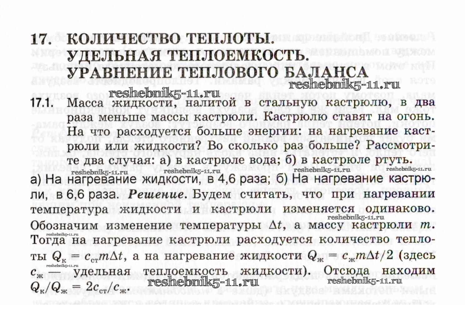 Готовая домашняя работа с ответами по Физике за 7, 8, 9 класс Генденштейн, Кирик, Гельфгат Задачник Илекса 2020 - 17. Количество теплоты. Удельная теплоемкость. Уравнение теплового баланса 17.1