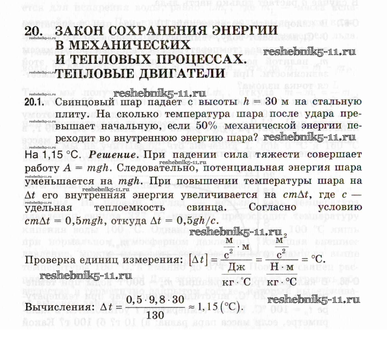 Готовая домашняя работа с ответами по Физике за 7, 8, 9 класс Генденштейн, Кирик, Гельфгат Задачник Илекса 2020 - 20. Закон сохранения энергии в механических и тепловых процессах. Тепловые двигатели 20.1