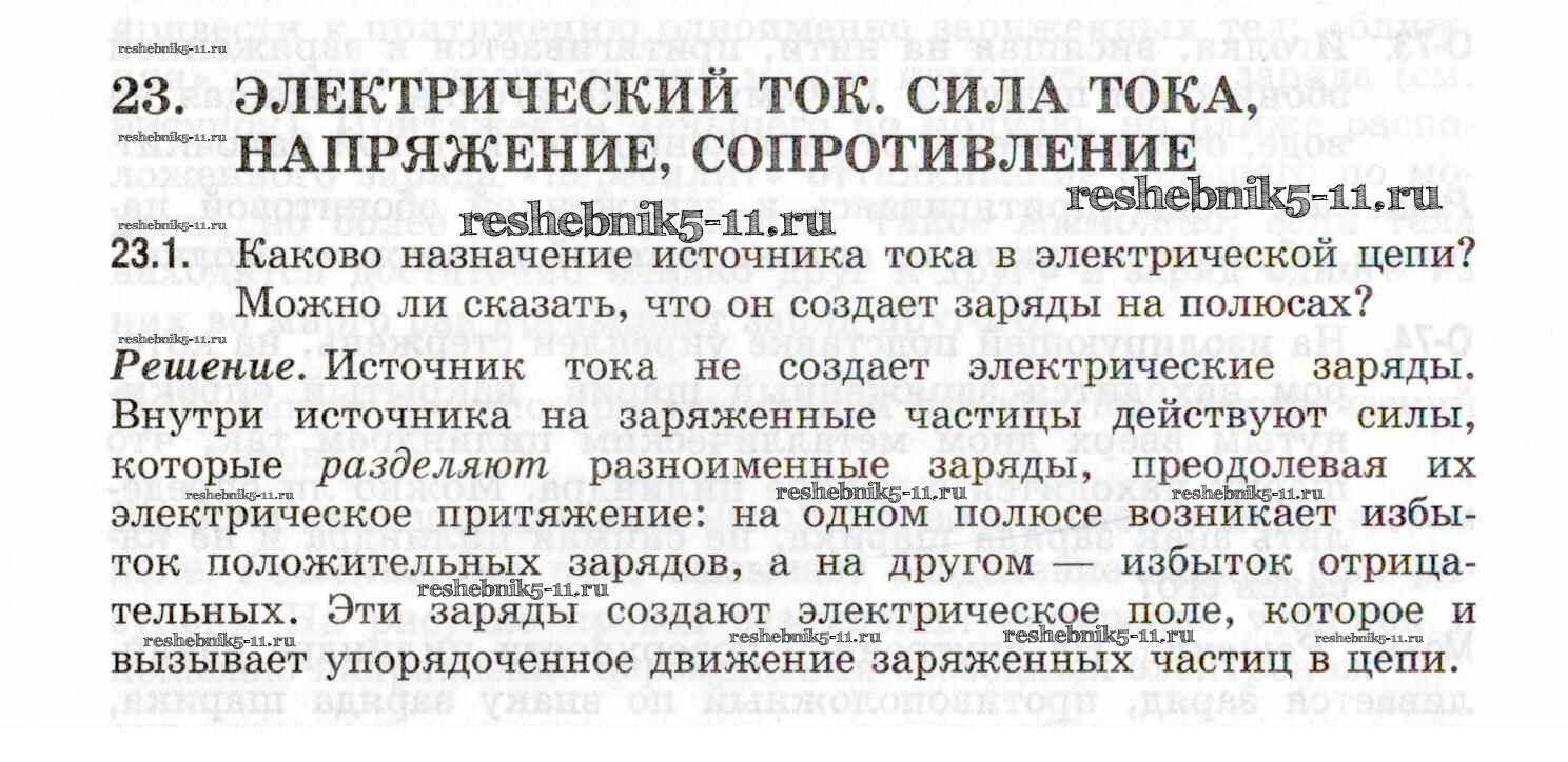 Готовая домашняя работа с ответами по Физике за 7, 8, 9 класс Генденштейн, Кирик, Гельфгат Задачник Илекса 2020 - 23. Электрический ток. Сила тока, напряжение, сопротивление 23.1