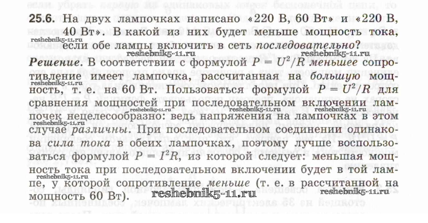 Готовая домашняя работа с ответами по Физике за 7, 8, 9 класс Генденштейн, Кирик, Гельфгат Задачник Илекса 2020 - 25. Работа и мощность электрического тока. Закон Джоуля - Ленца 25.6