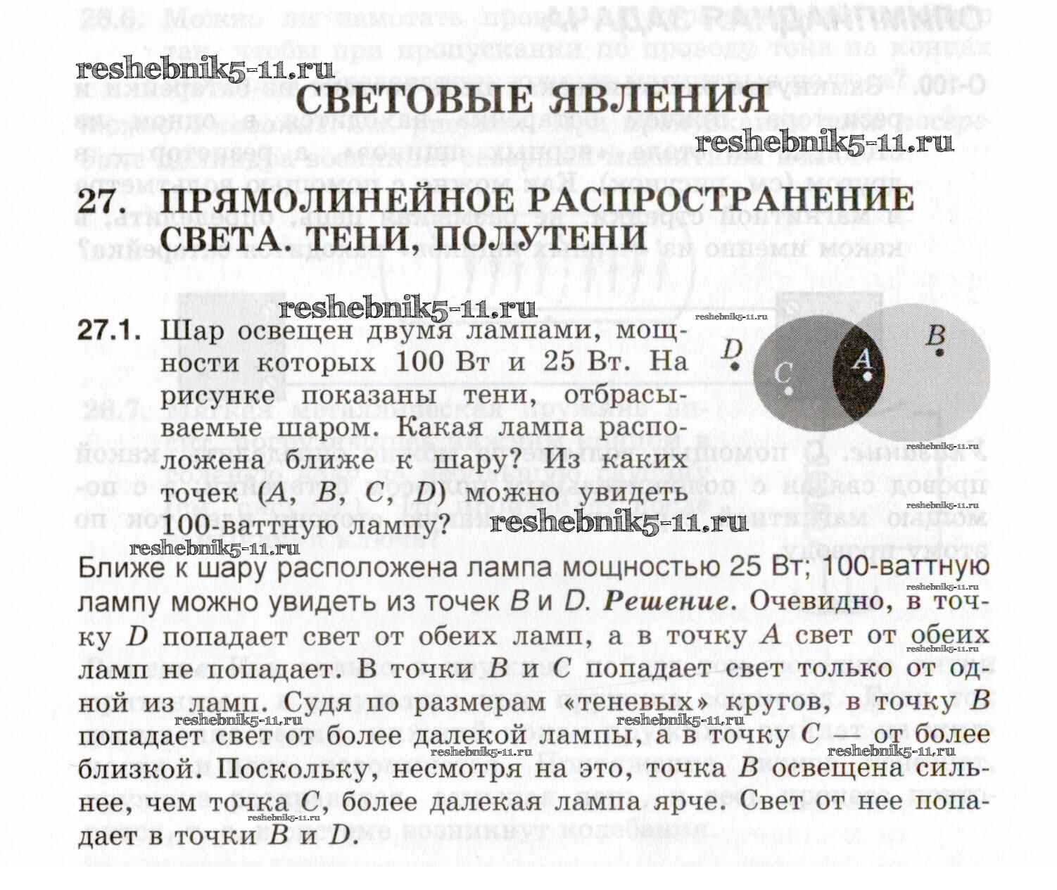 Готовая домашняя работа с ответами по Физике за 7, 8, 9 класс Генденштейн, Кирик, Гельфгат Задачник Илекса 2020 - 27. Прямолинейное распространение света. Тени, полутени 27.1
