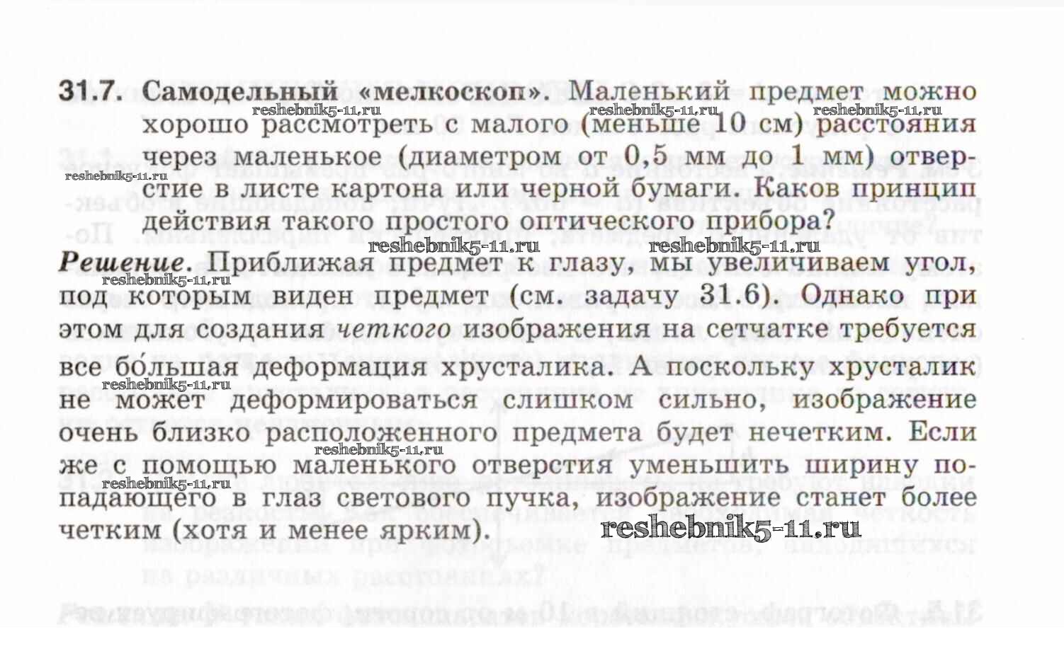 Готовая домашняя работа с ответами по Физике за 7, 8, 9 класс Генденштейн, Кирик, Гельфгат Задачник Илекса 2020 - 31. Оптические приборы 31.7