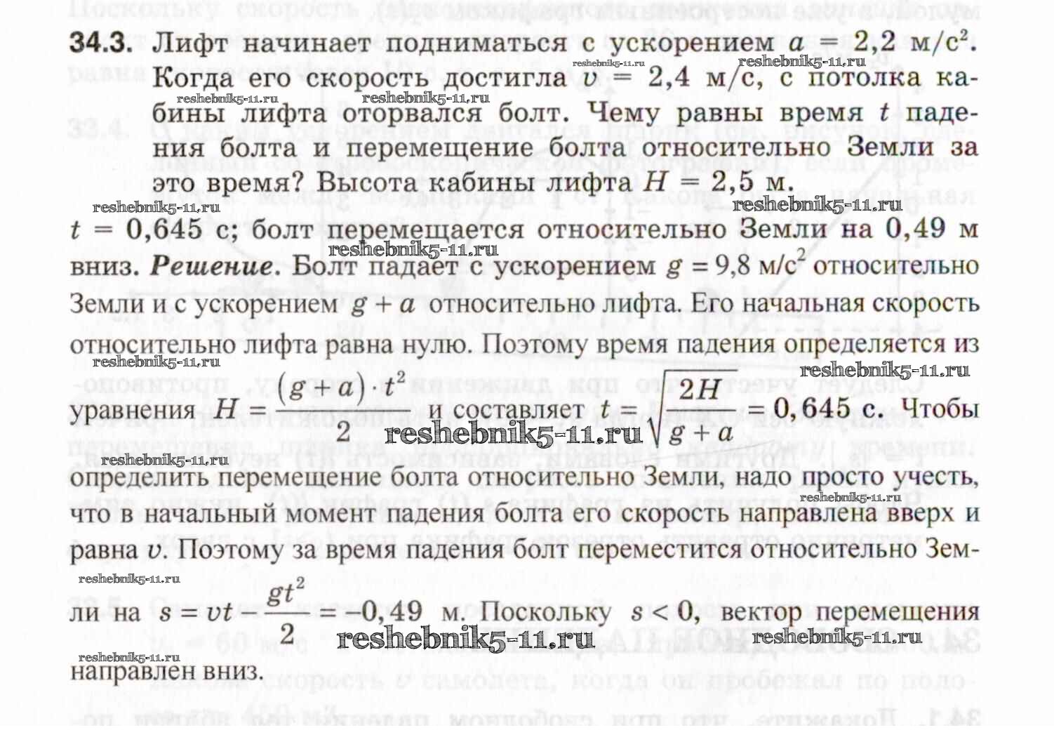 Готовая домашняя работа с ответами по Физике за 7, 8, 9 класс Генденштейн, Кирик, Гельфгат Задачник Илекса 2020 - 34. Свободное падение 34.3