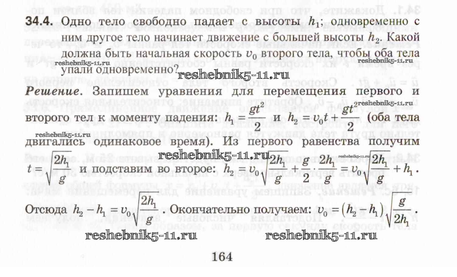 Готовая домашняя работа с ответами по Физике за 7, 8, 9 класс Генденштейн, Кирик, Гельфгат Задачник Илекса 2020 - 34. Свободное падение 34.4