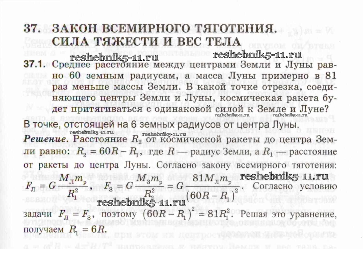 Готовая домашняя работа с ответами по Физике за 7, 8, 9 класс Генденштейн, Кирик, Гельфгат Задачник Илекса 2020 - 37. Закон всемирного тяготения. Сила тяжести и вес тела 37.1
