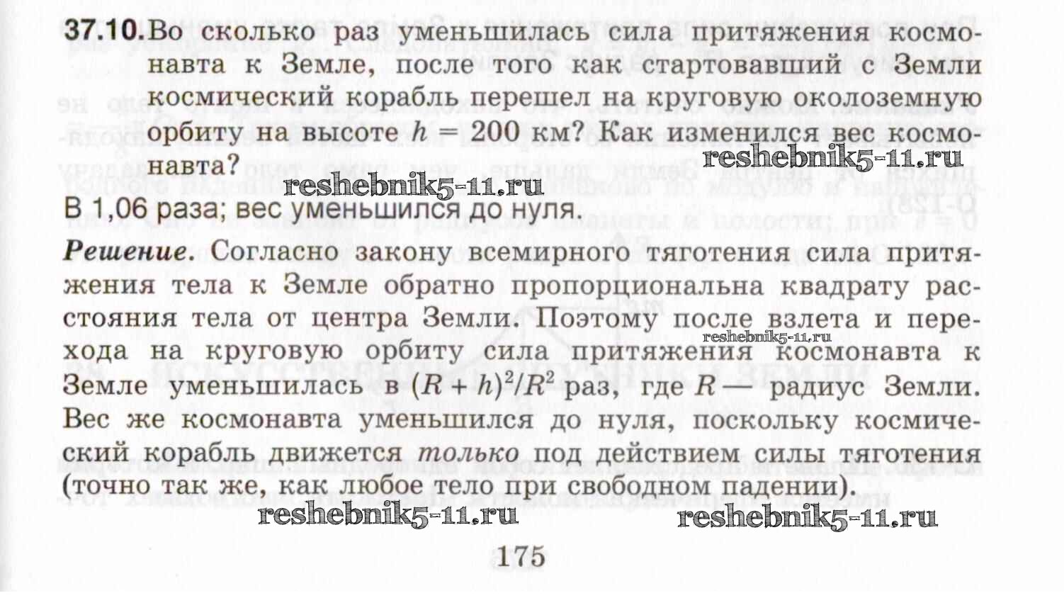 Готовая домашняя работа с ответами по Физике за 7, 8, 9 класс Генденштейн, Кирик, Гельфгат Задачник Илекса 2020 - 37. Закон всемирного тяготения. Сила тяжести и вес тела 37.10