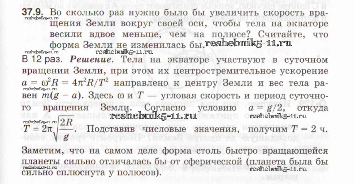 Готовая домашняя работа с ответами по Физике за 7, 8, 9 класс Генденштейн, Кирик, Гельфгат Задачник Илекса 2020 - 37. Закон всемирного тяготения. Сила тяжести и вес тела 37.9