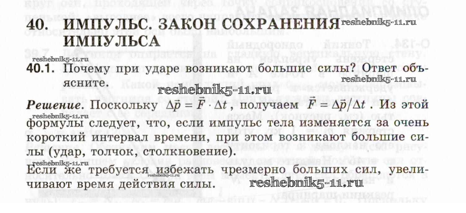 Готовая домашняя работа с ответами по Физике за 7, 8, 9 класс Генденштейн, Кирик, Гельфгат Задачник Илекса 2020 - 40. Импульс. Закон сохранения импульса 40.1