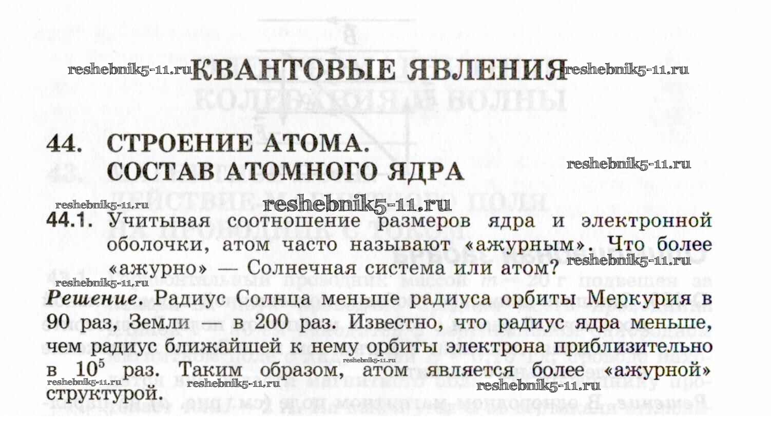 Готовая домашняя работа с ответами по Физике за 7, 8, 9 класс Генденштейн, Кирик, Гельфгат Задачник Илекса 2020 - 44. Строение атома. Состав атомного ядра 44.1