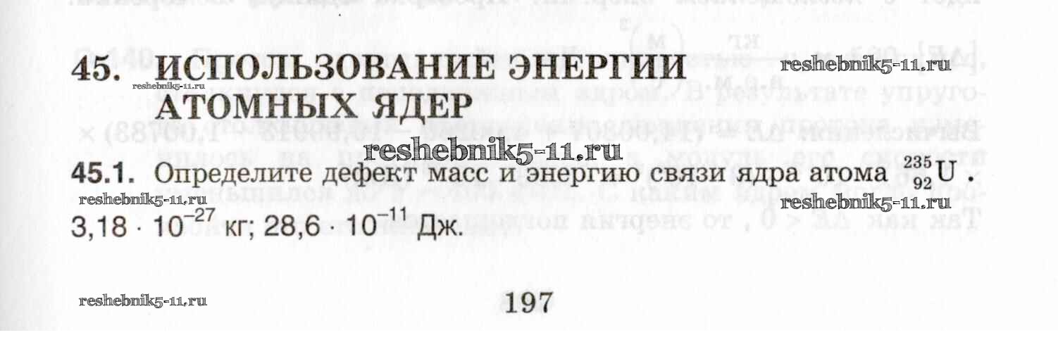 Готовая домашняя работа с ответами по Физике за 7, 8, 9 класс Генденштейн, Кирик, Гельфгат Задачник Илекса 2020 - 45. Использование энергии атомных ядер 45.1