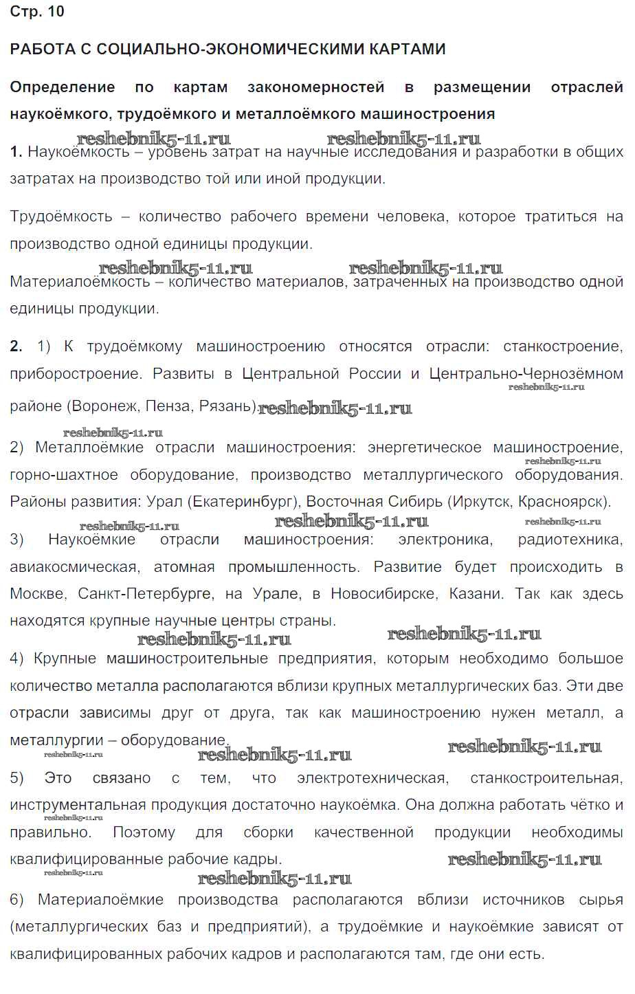 Готовая домашняя работа с ответами по Географии за 9 класс Сиротин Рабочая тетрадь с контурными картами Дрофа 2020 ФГОС - Страницы 10