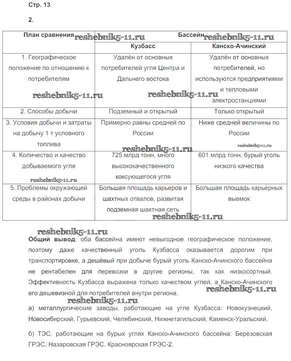 Готовая домашняя работа с ответами по Географии за 9 класс Сиротин Рабочая тетрадь с контурными картами Дрофа 2020 ФГОС - Страницы 13